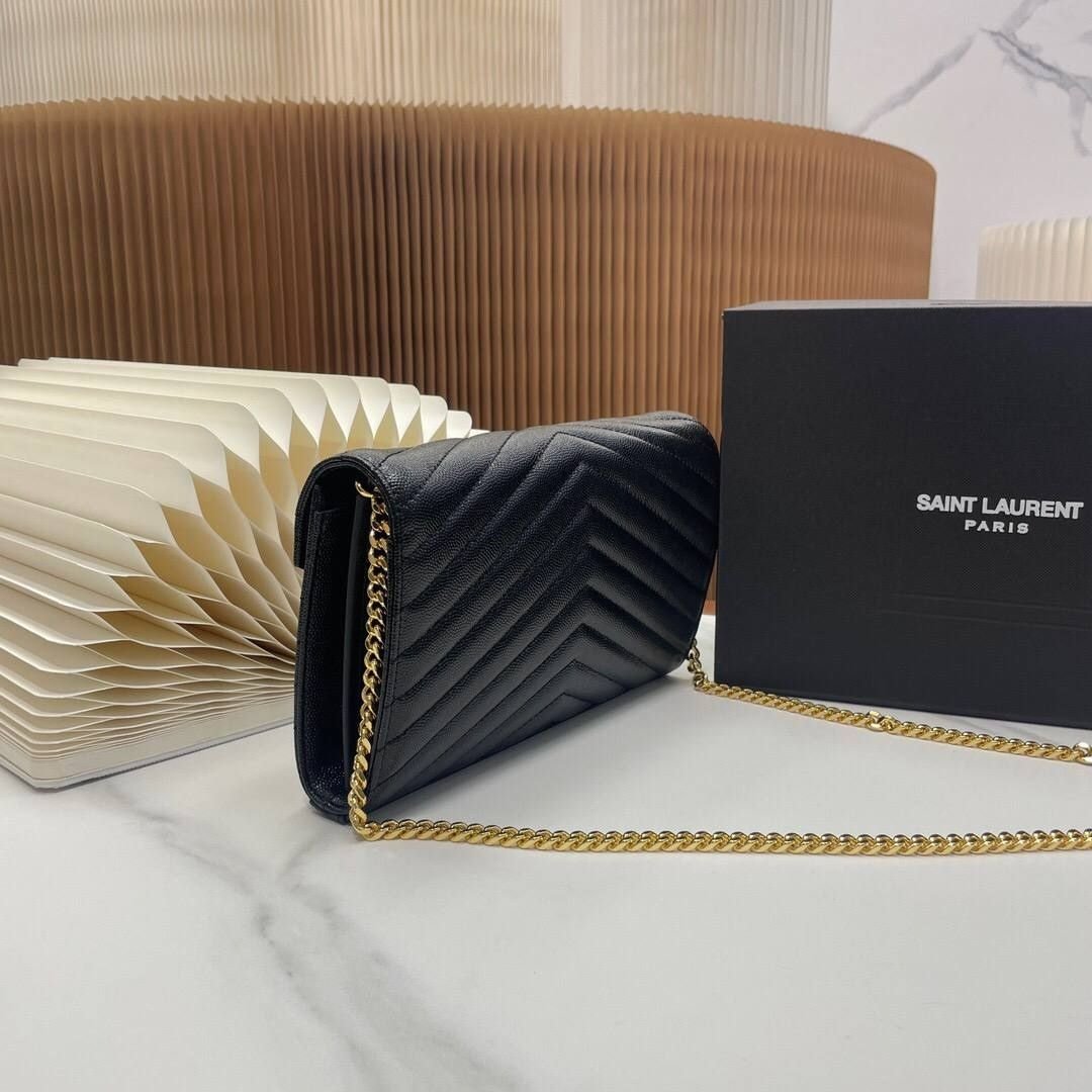 Borsa Saint Laurent Cassandre Wallet on Chain in pelle nera 22,5 cm