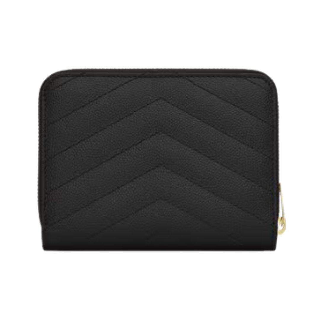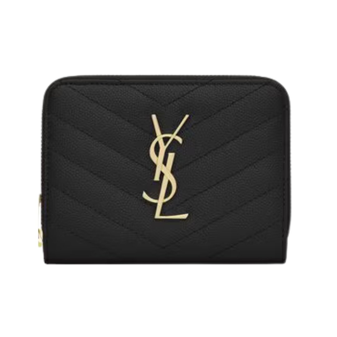 Dettagli:โ— Materiale: Pelle grain de poudreโ— Colore: Neroโ— Chiusura: Zip perimetraleโ— Logo: Monogram YSL doratoโ— Interno: Slot per carte e