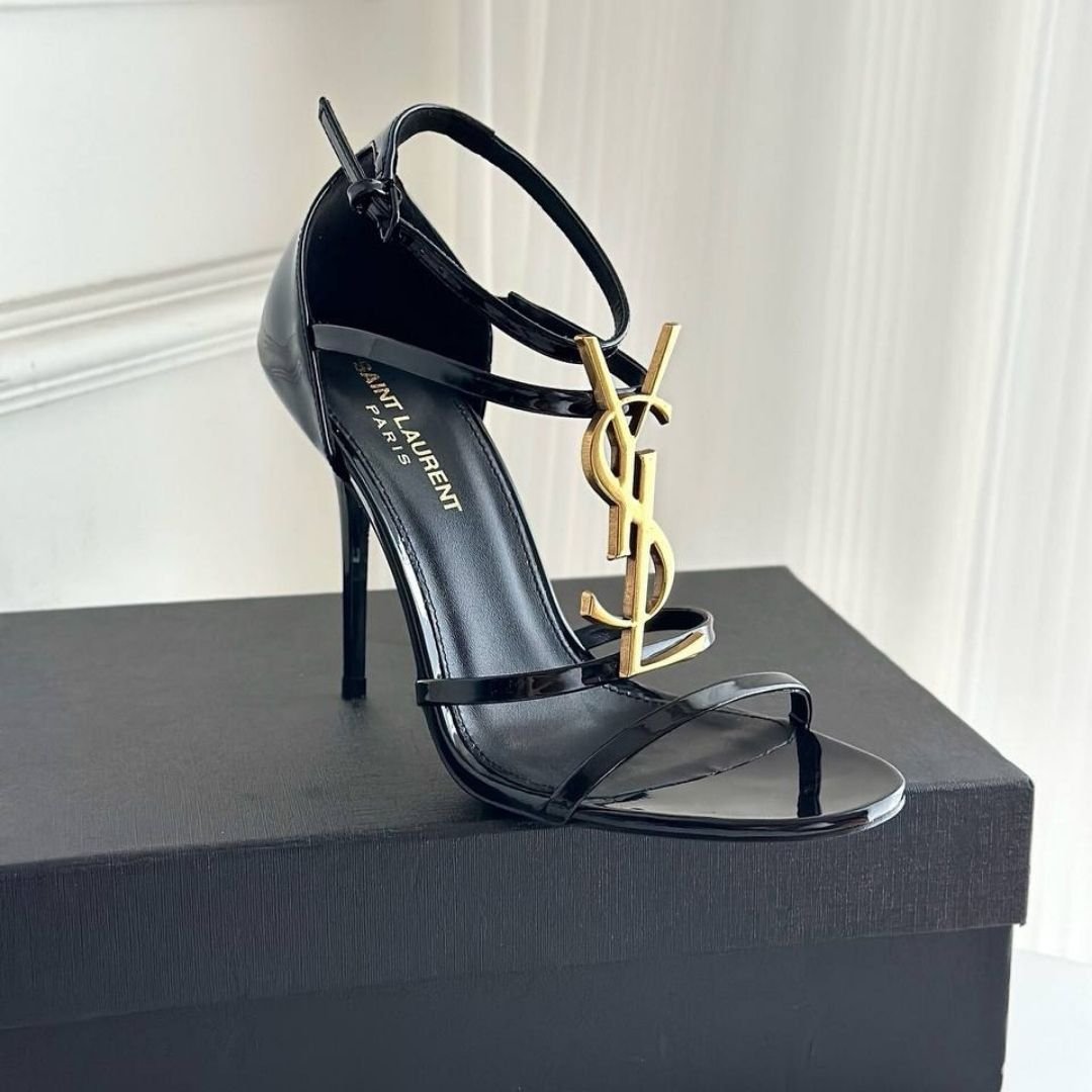 Dettagli:โ— Materiale: Pelle lisciaโ— Colore: Neroโ— Chiusura: Cinturino alla caviglia con fibbiaโ— Logo: Lettere YSL metalliche lungo i cinturiniโ— Suola: