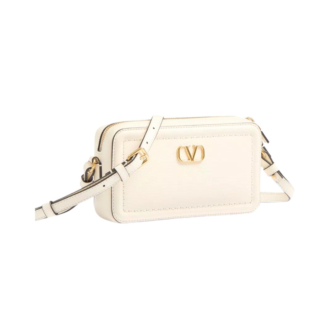 Borsa Valentino Alltime Mini in pelle martellata avorio 19 cm