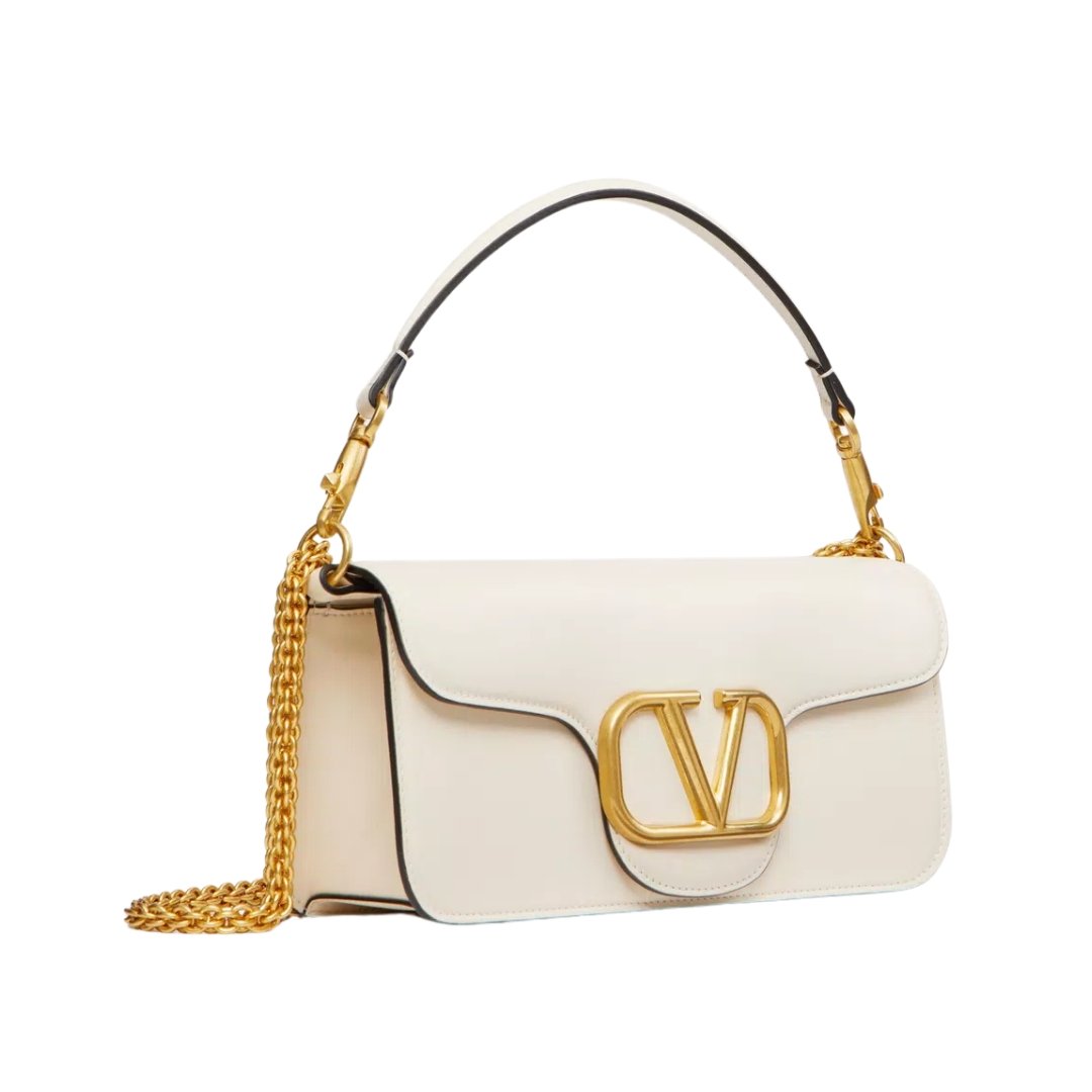 Borsa Valentino Locò in pelle avorio chiaro 27 cm