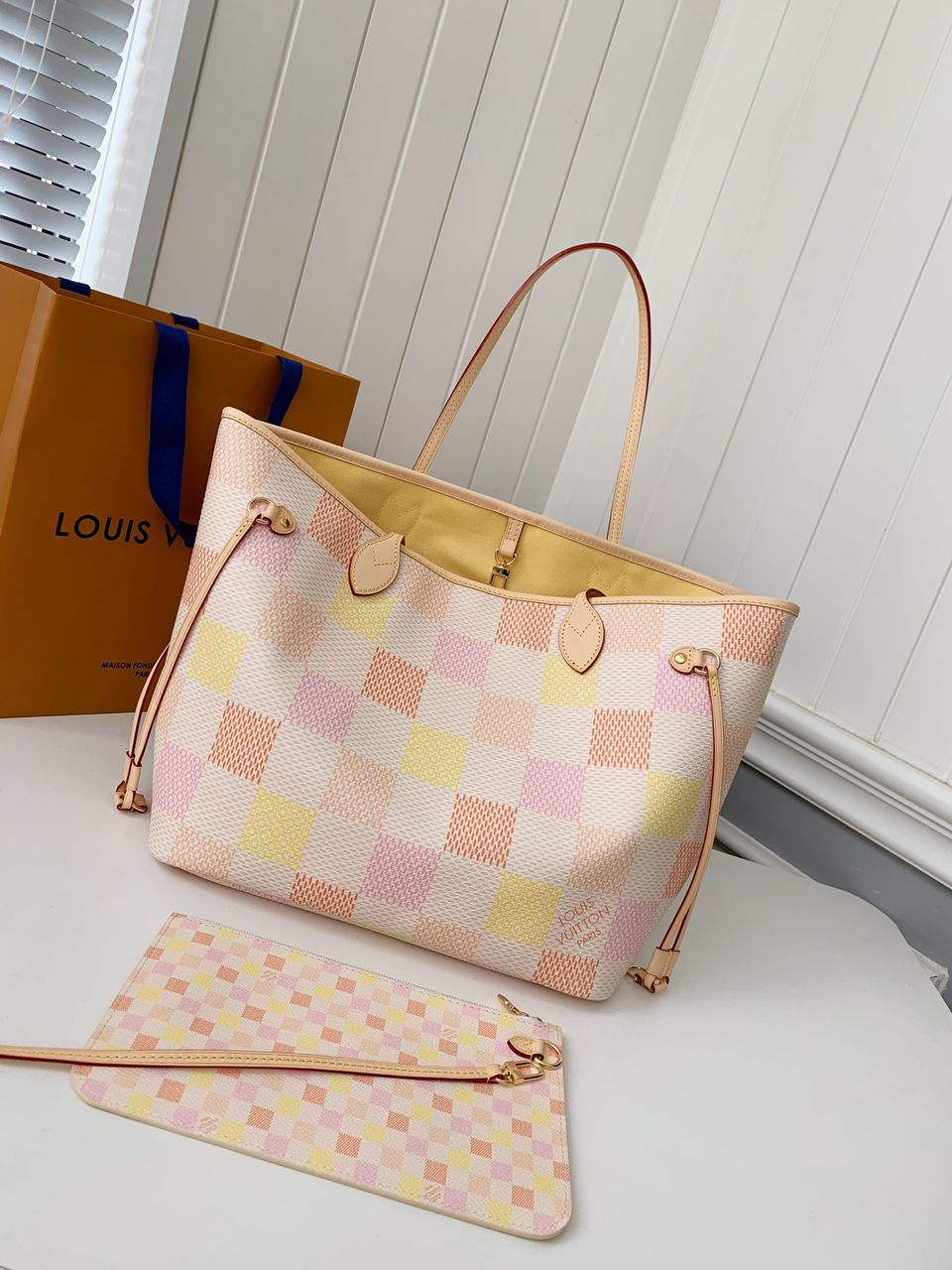 ● Materiale: Tela Damier Pastel con finiture in pelle