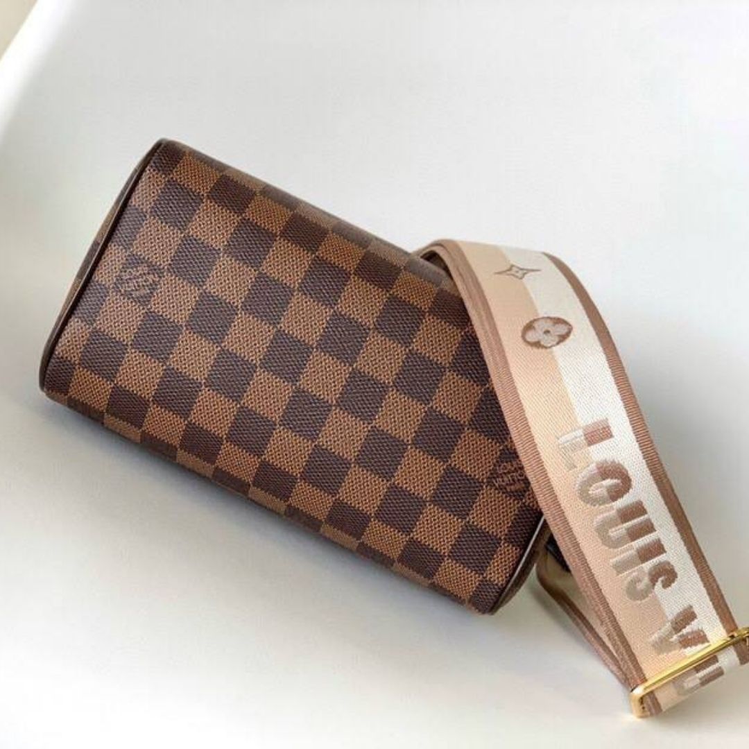 ● Materiale: Tela Damier Ebene con finiture in pelle liscia color cioccolato