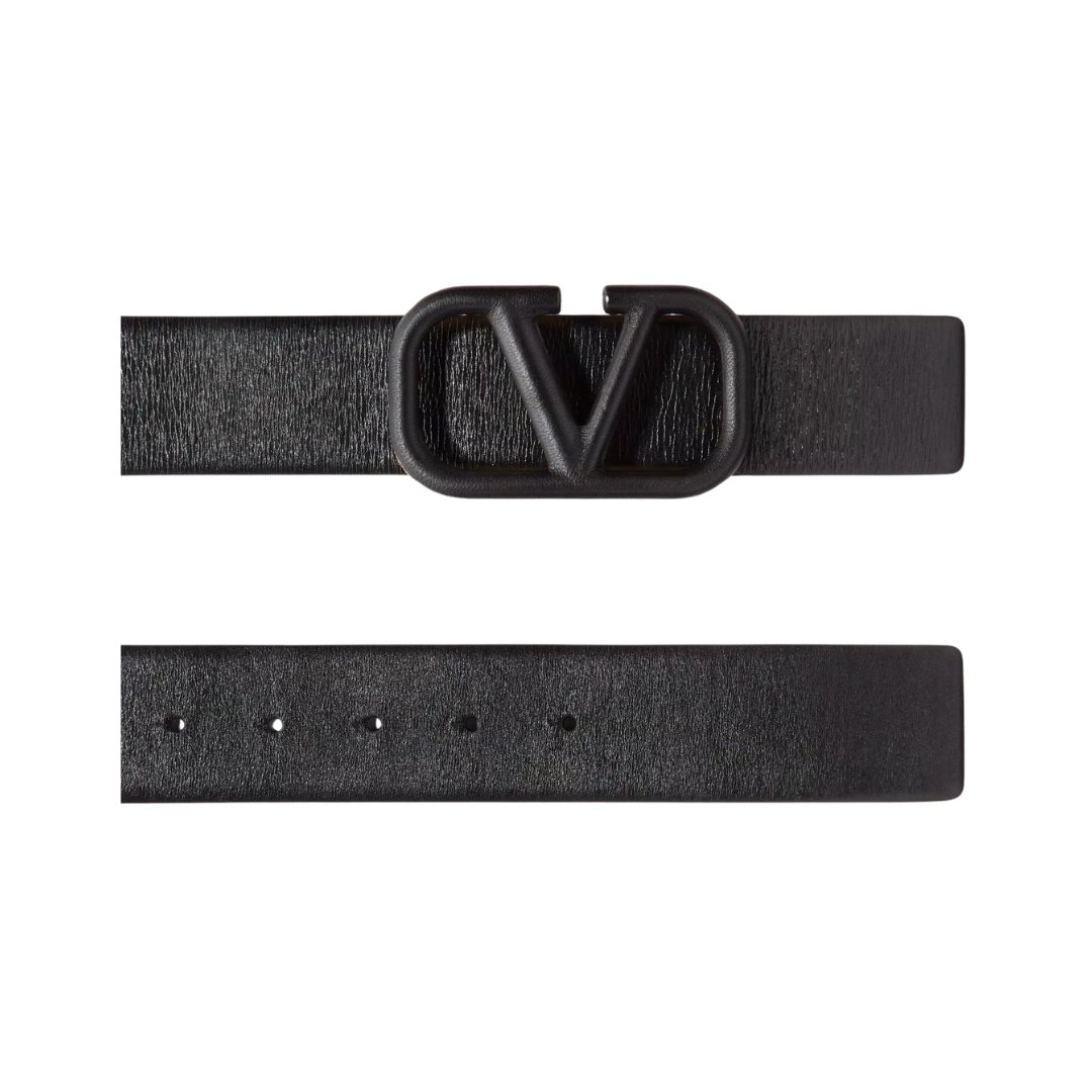 Cintura Valentino VLogo in pelle lucida nera 4 cm