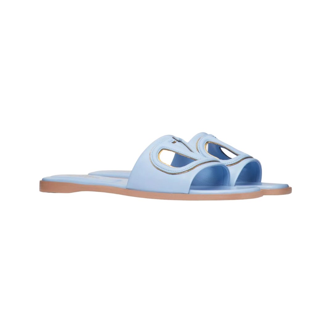Sandali Valentino VLogo Cut-Out in pelle azzurro con finiture ottone anticato