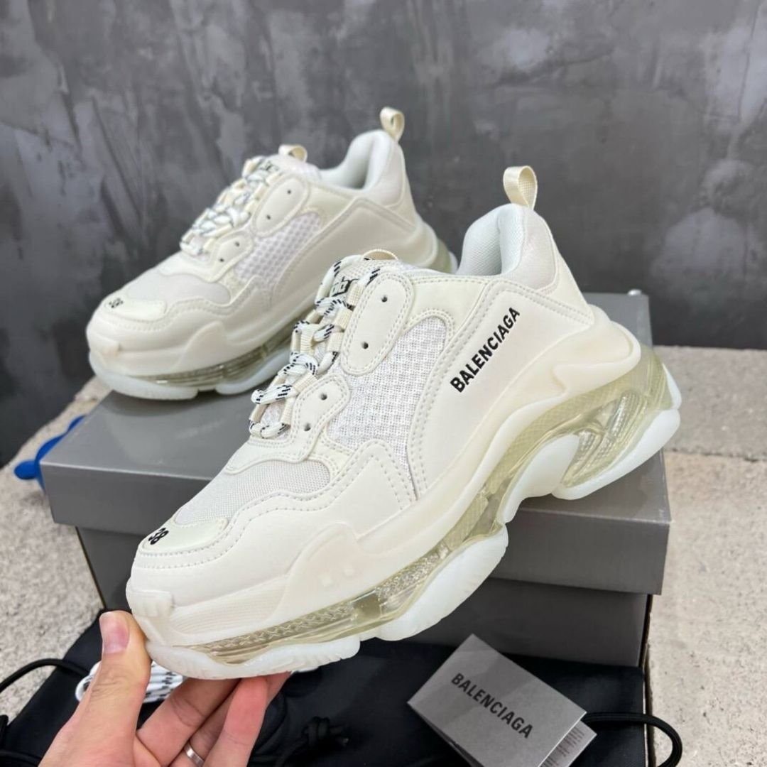 Dettagli:โ— Materiale: pelle, mesh e gommaโ— Colore: biancoโ— Chiusura: lacci bianchiโ— Logo: Balenciaga ricamato sul latoโ— Suola: tripla suola oversize
