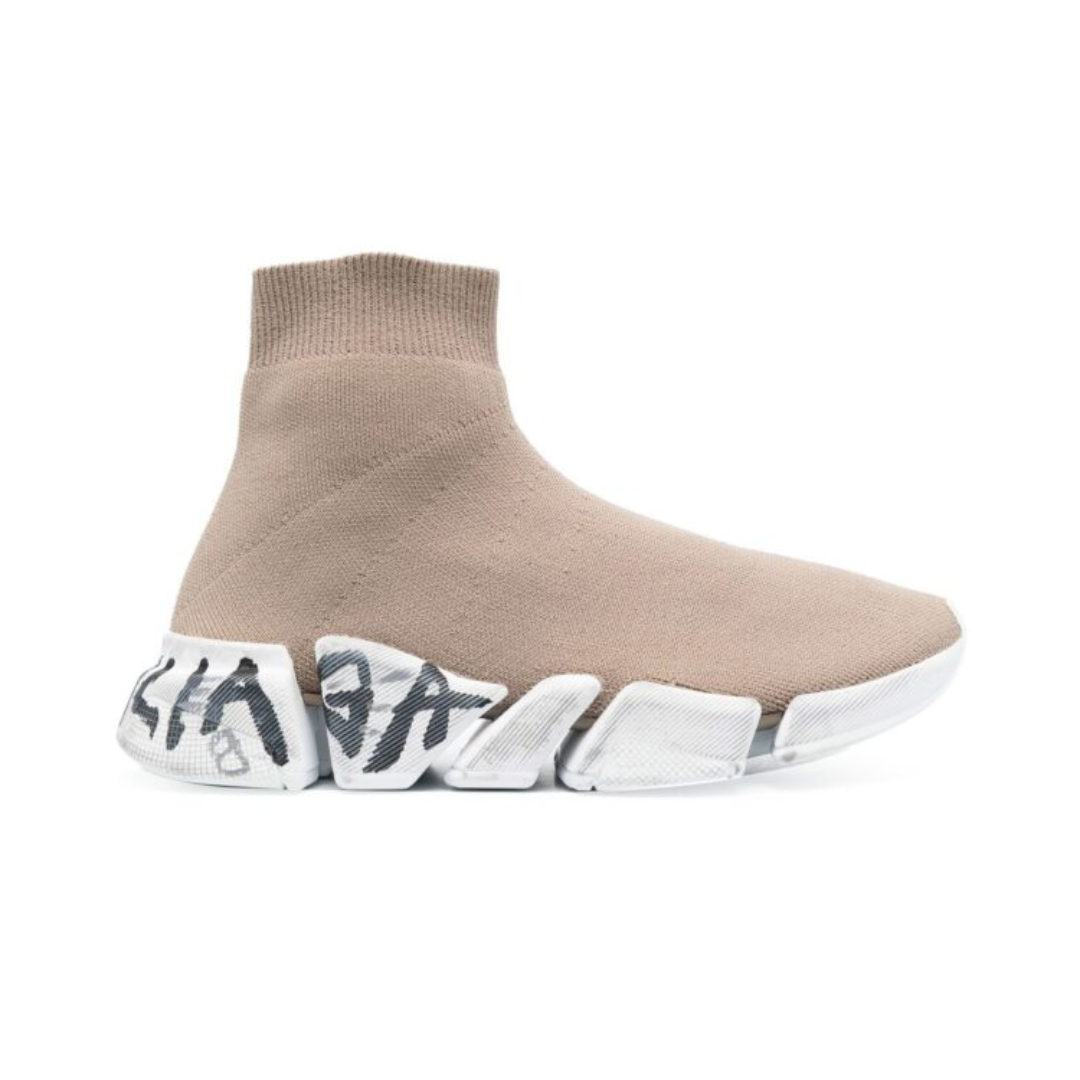 Dettagli:โ— Materiale: maglia elasticaโ— Colore: beige con suola bianca e scritta graffiti neraโ— Chiusura: senza lacciโ— Logo: Balenciaga stampato sulla