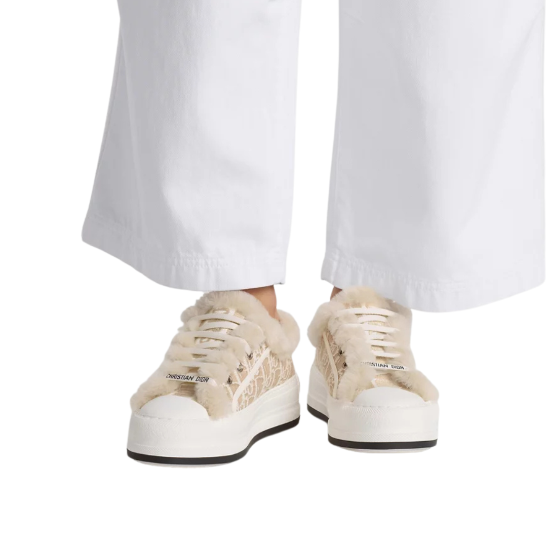 Scarpa Dior Dway Mule in cotone beige ricamato