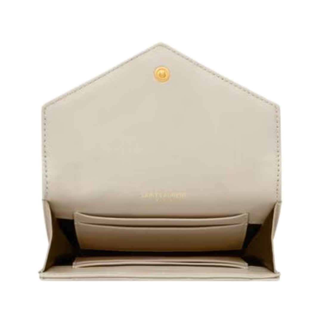 Portafoglio compatto Cassandre in agnello bianco 13.5 cm