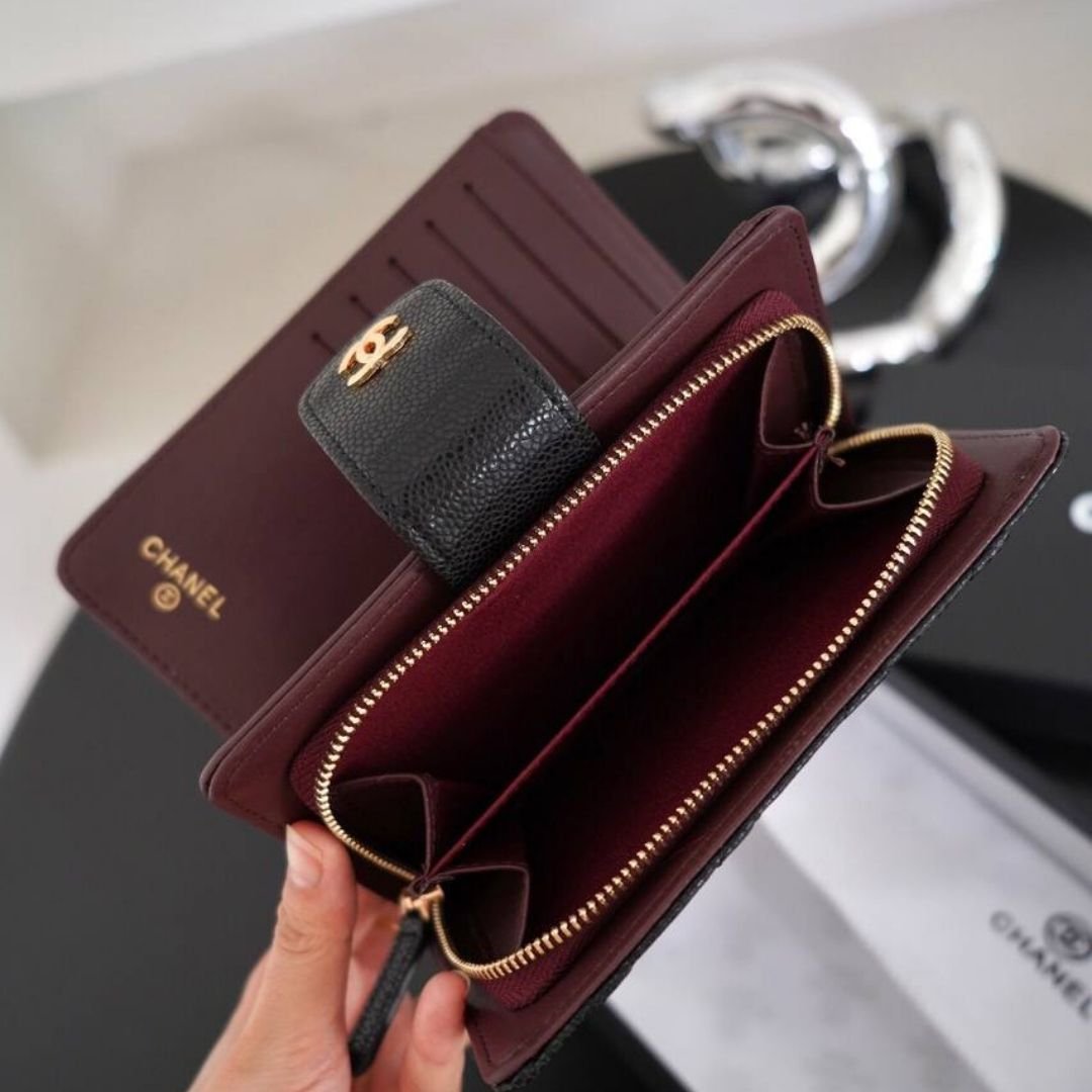 ● Interno: Slot per carte, tasca zip, sezioni banconote