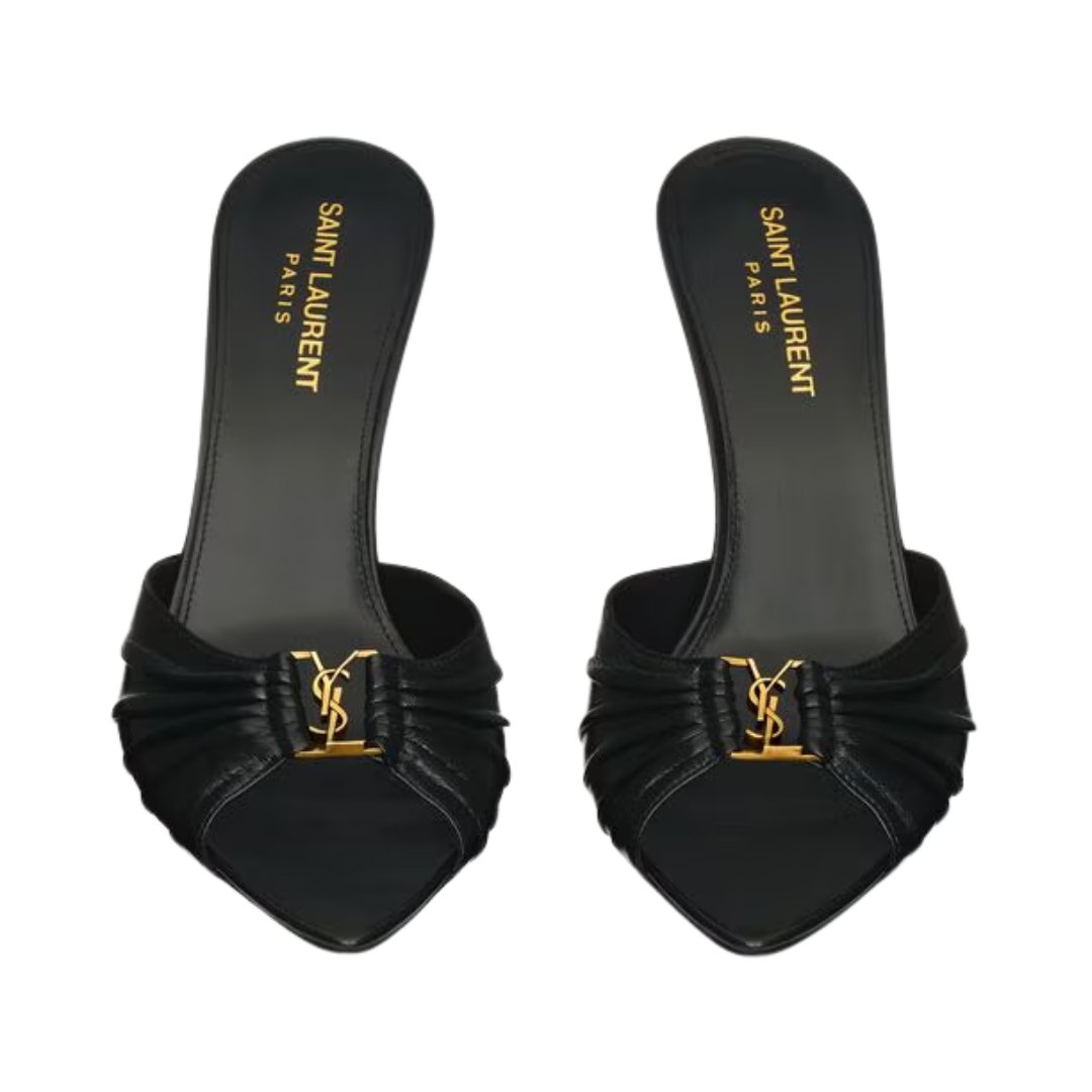Mules Saint Laurent Babylone in pelle liscia nera 9 cm