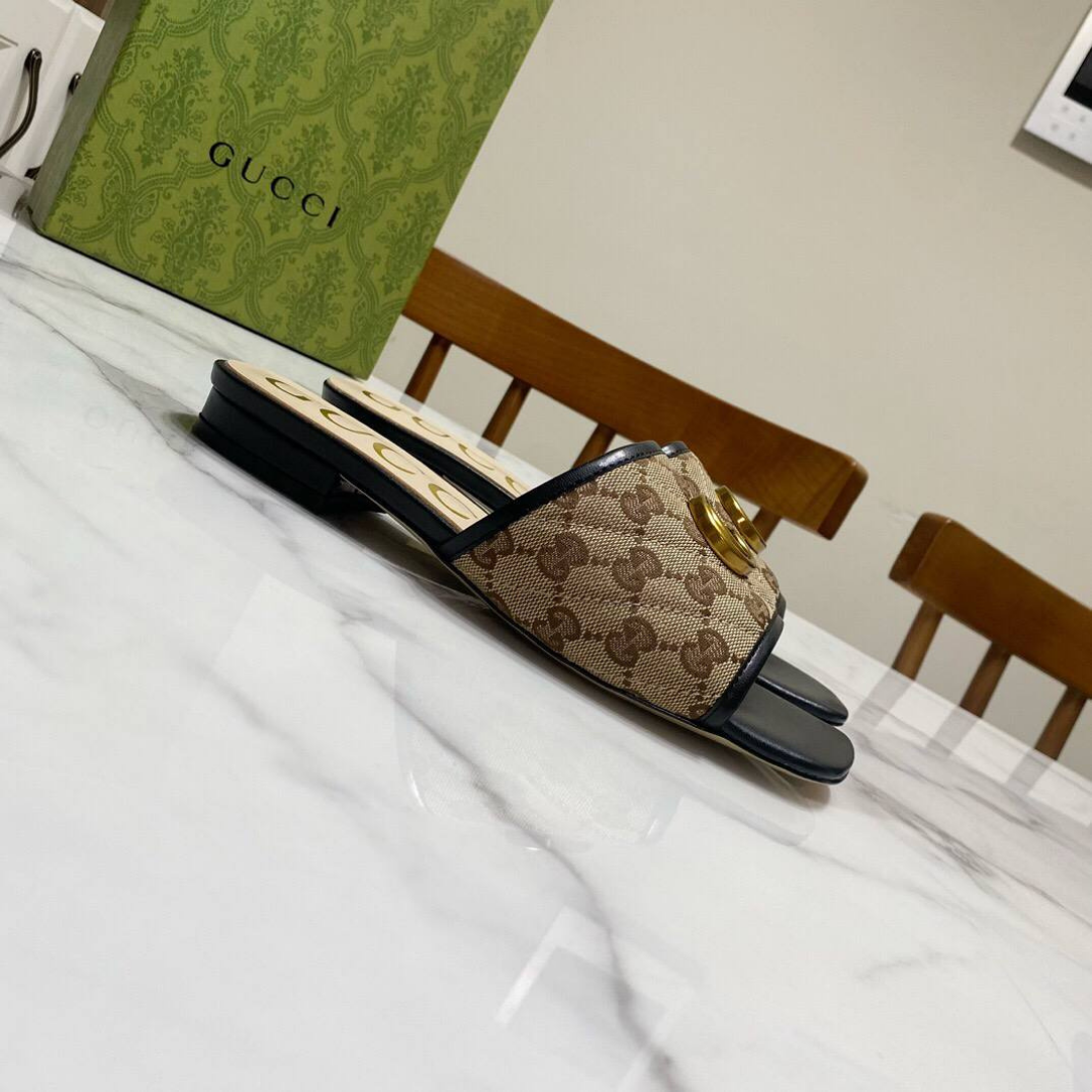 Sandali Gucci Jolie in canvas GG Supreme con profili in pelle nera