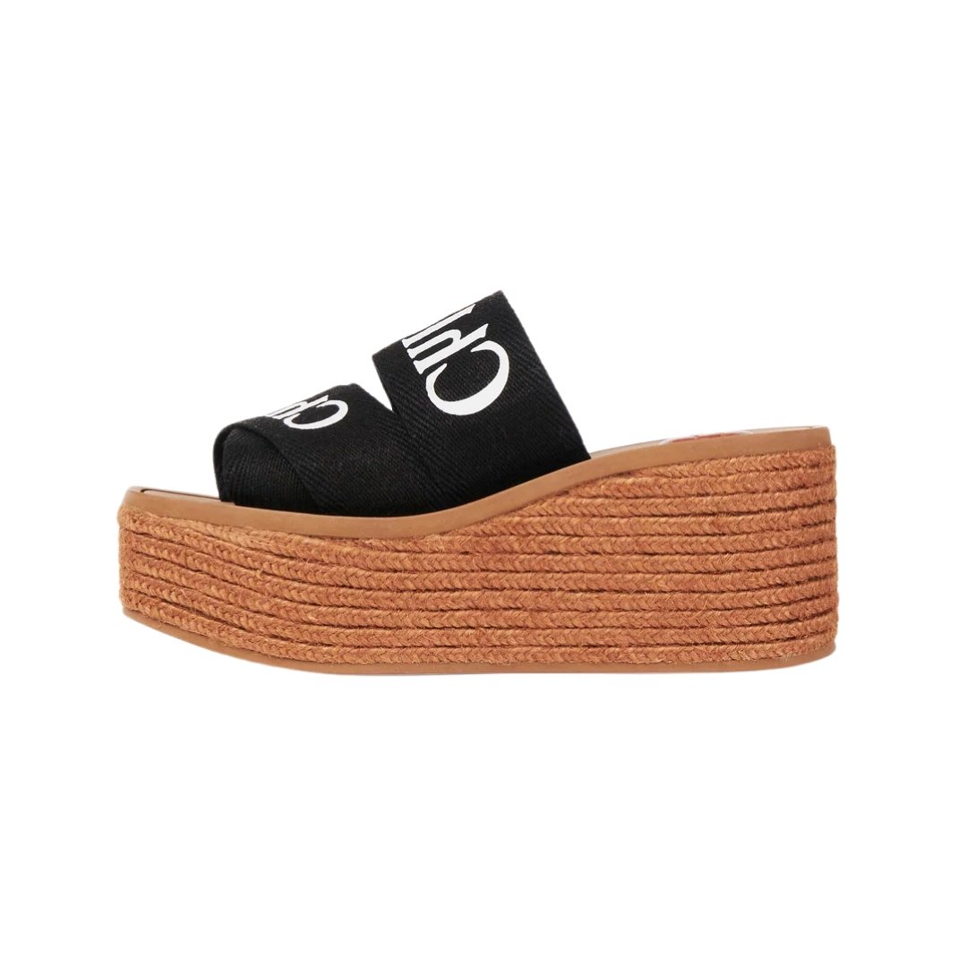 Mules Chloé Woody espadrilles nere con zeppa