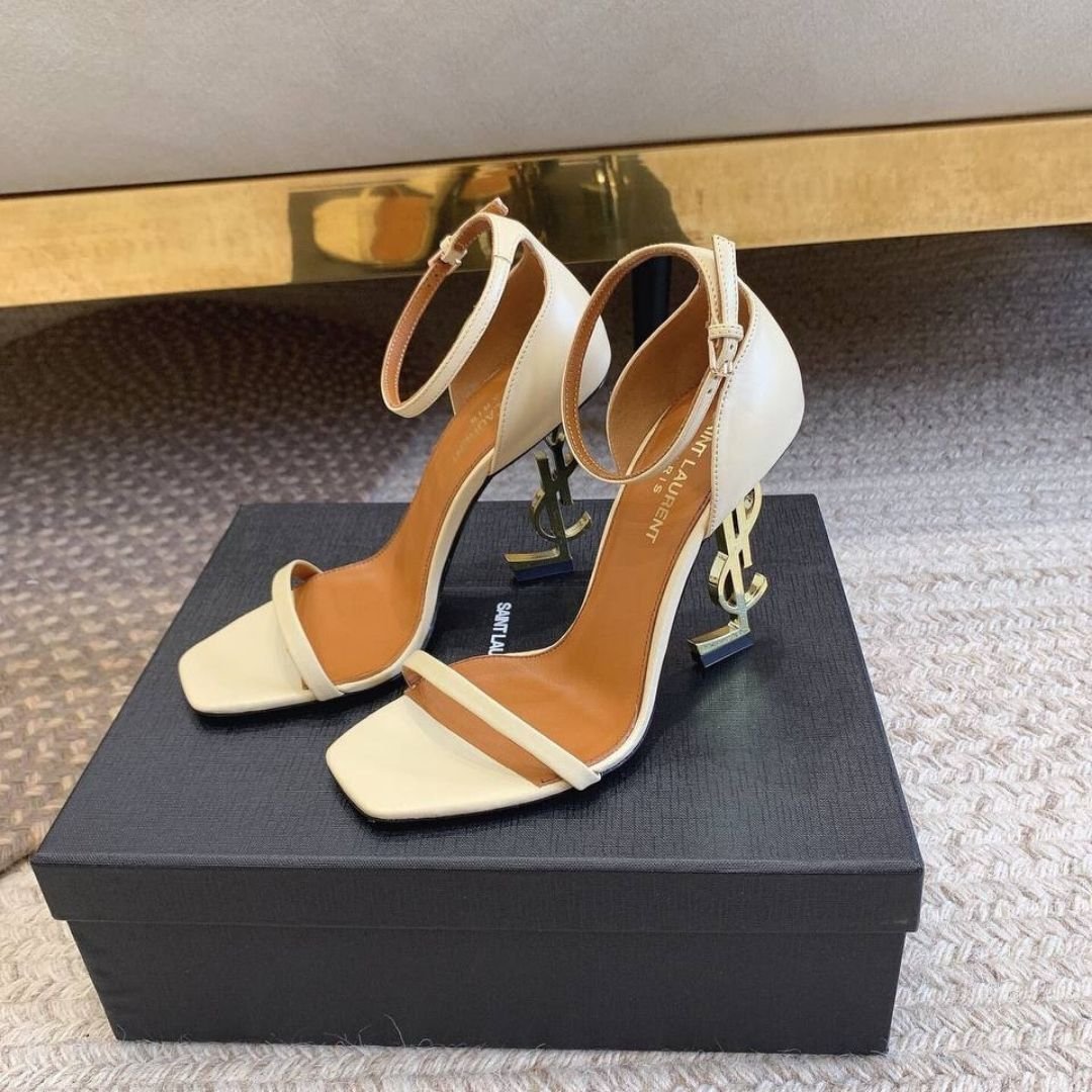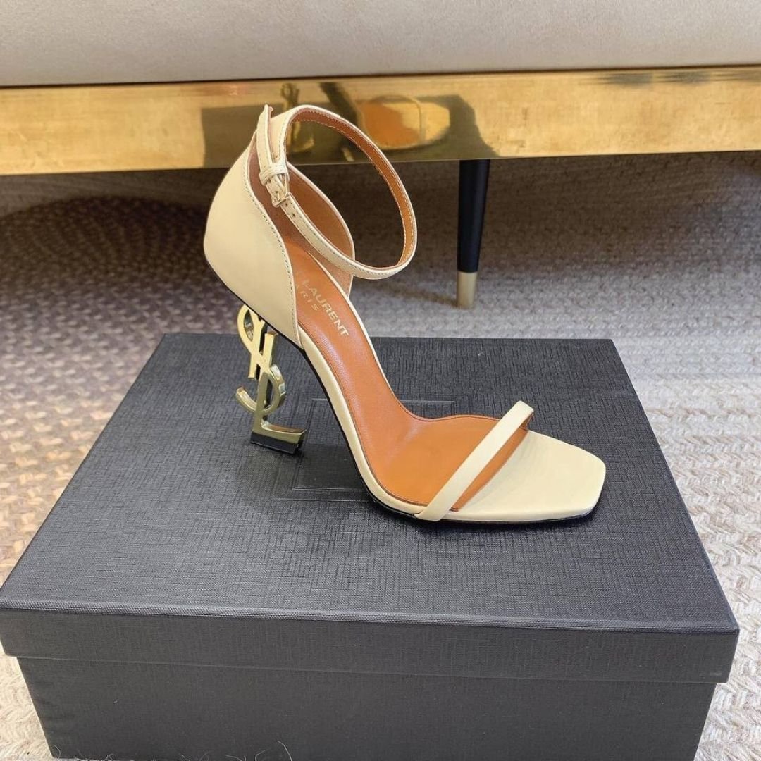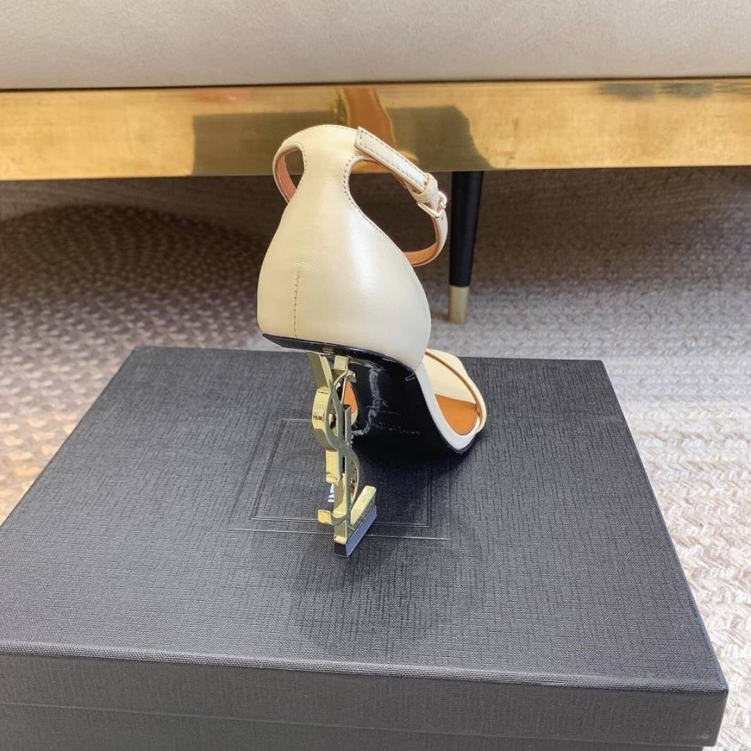 Sandali con tacco Saint Laurent Opyum beige 8,5 cm