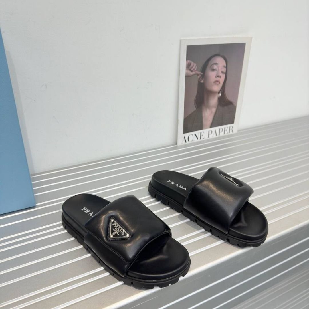 Sandali Prada imbottiti in pelle nera