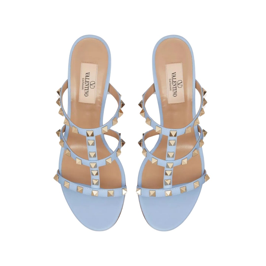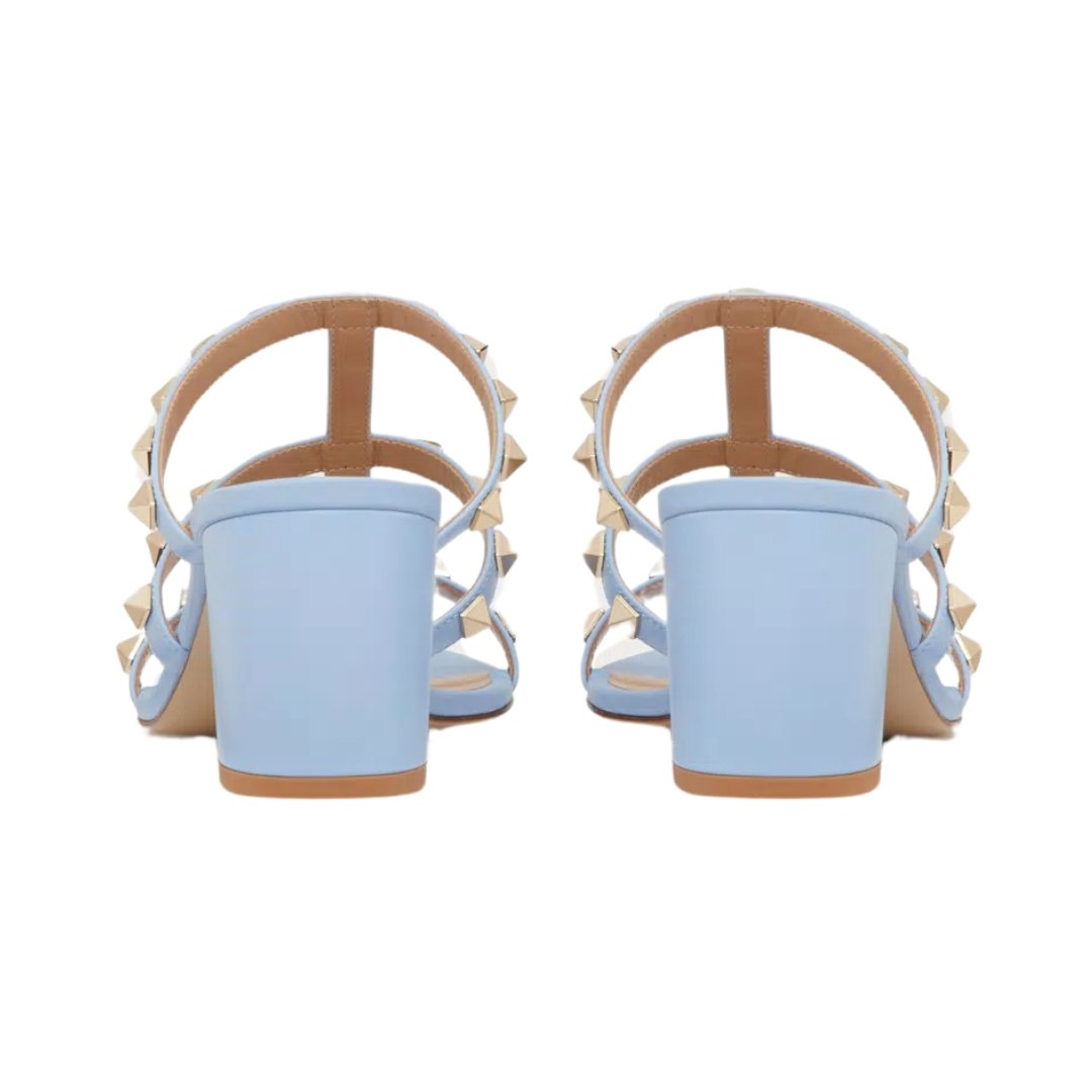 Sandali Valentino Rockstud in pelle azzurra con tacco 6 cm