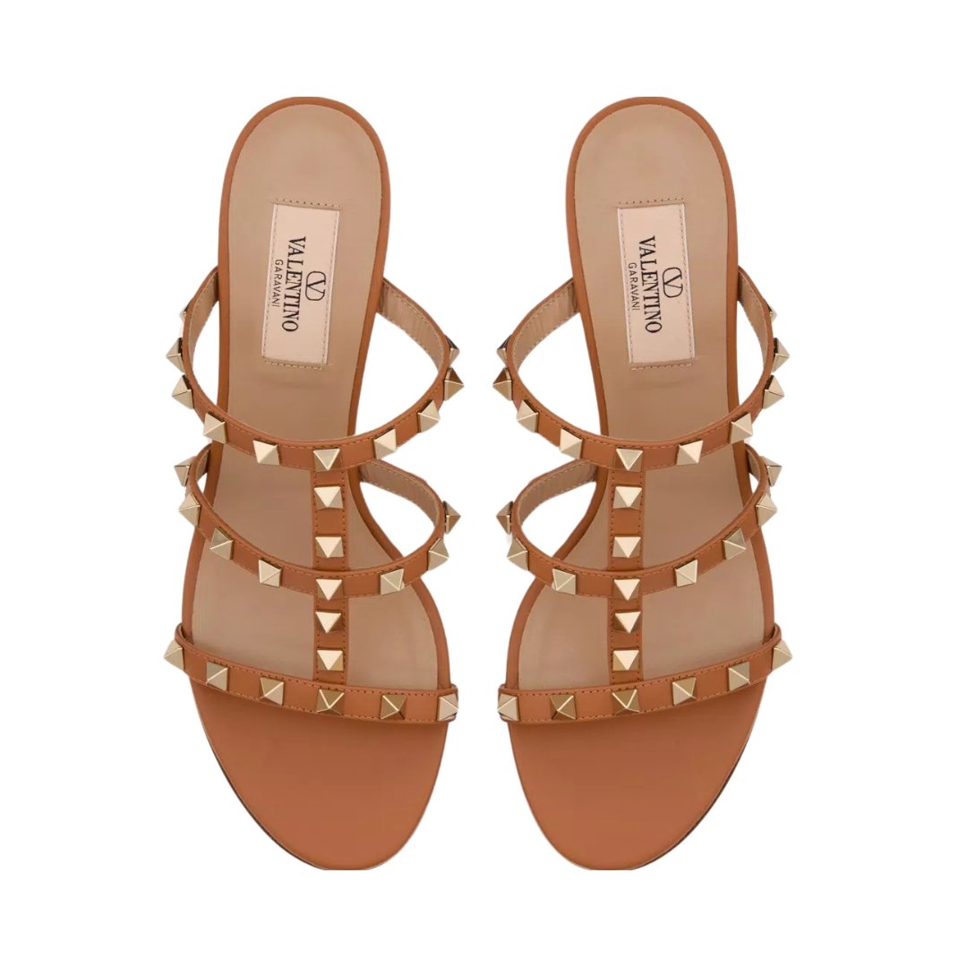 Sandali Valentino Rockstud in pelle mandorla con tacco 6 cm