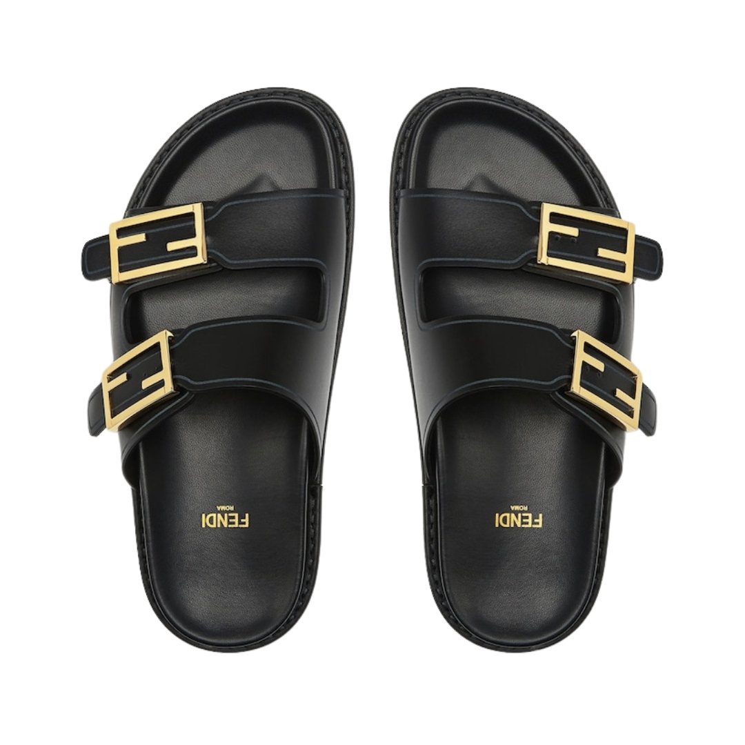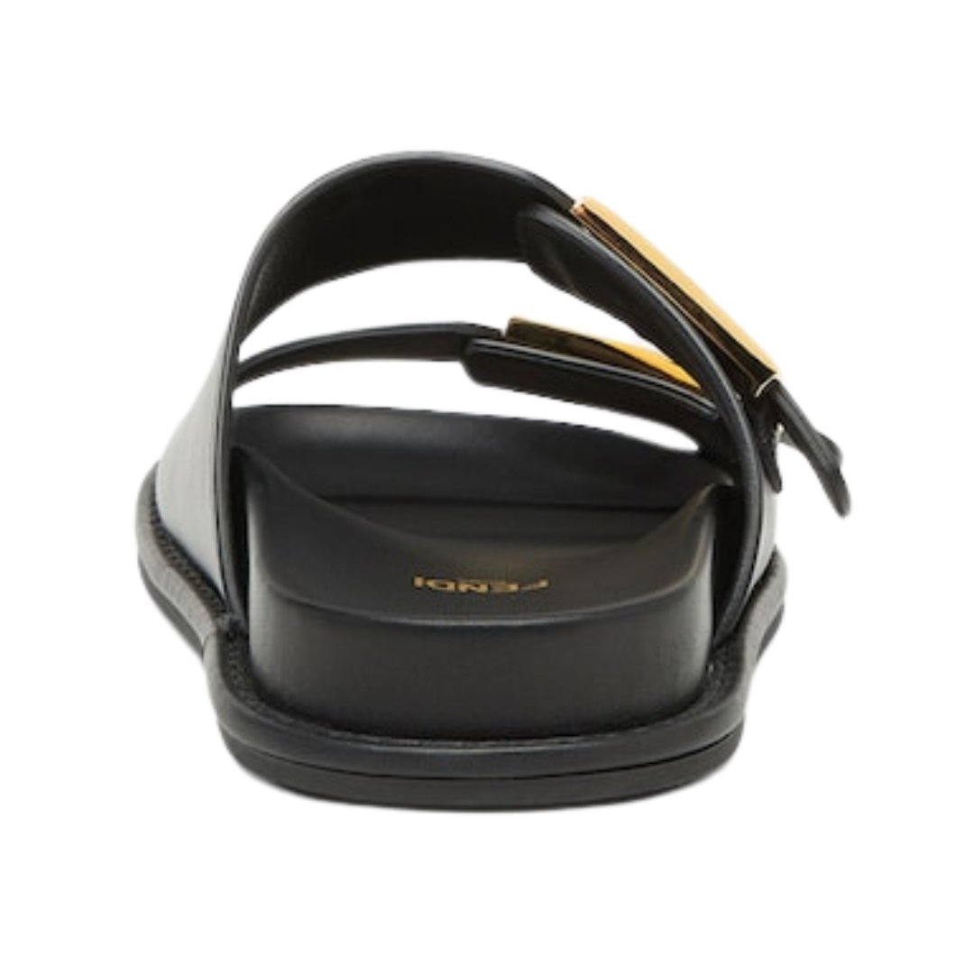 Sandali flat Fendi neri in pelle con logo FF