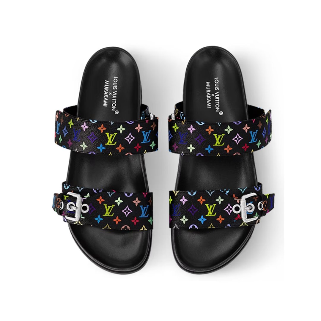 Sandali Louis Vuitton Bom Dia Flat Comfort neri multicolor