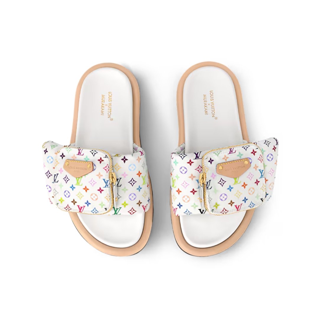 Sandali Louis Vuitton TM Pool Pillow Flat Comfort-Pantolette bianca multicolor