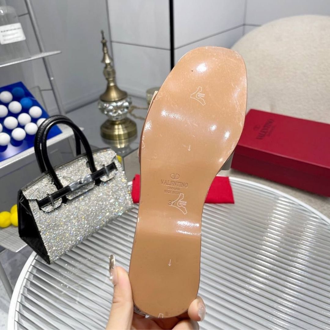 Sandali Valentino Garavani VLogo in pelle cipria con logo tono su tono