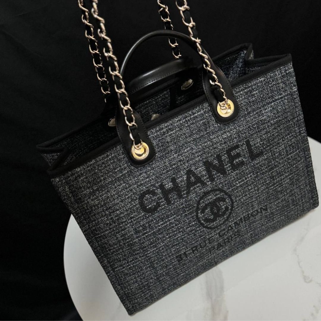 Borsa Chanel Deauville grigio scuro e oro 39 cm