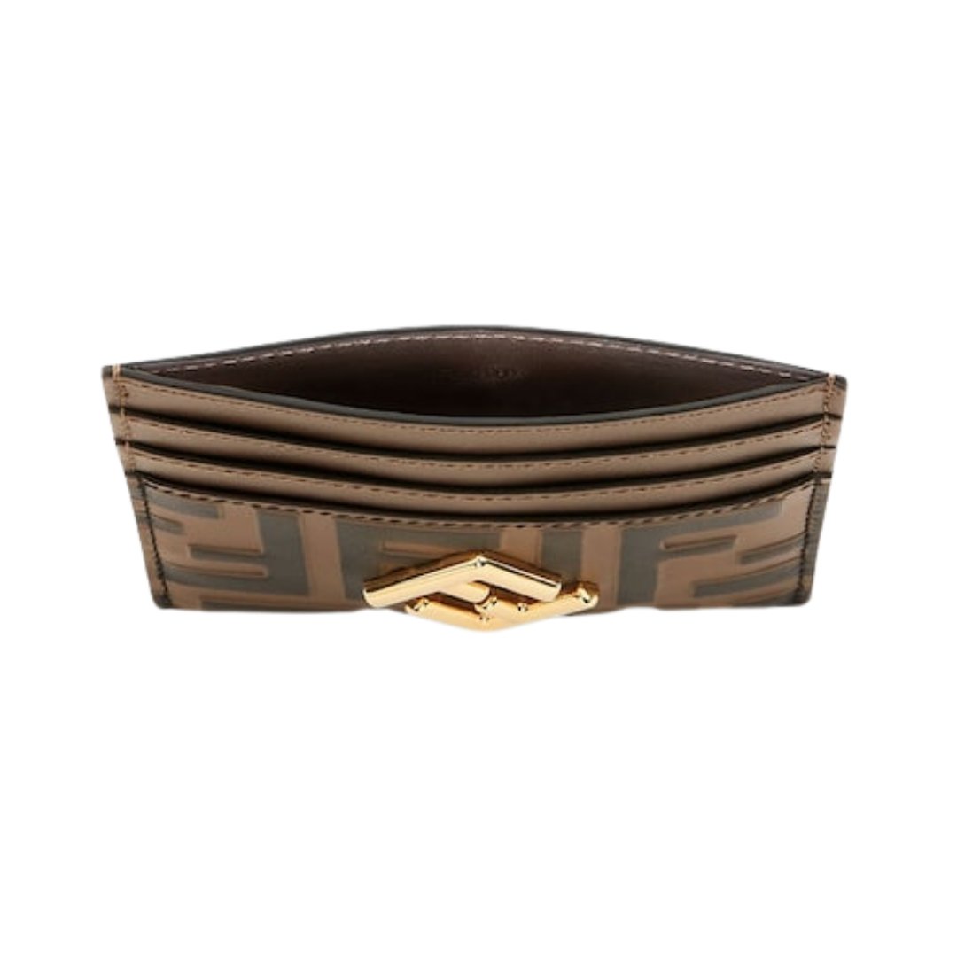 Portacarte Fendi in pelle marrone e nera con motivo FF 8 cm