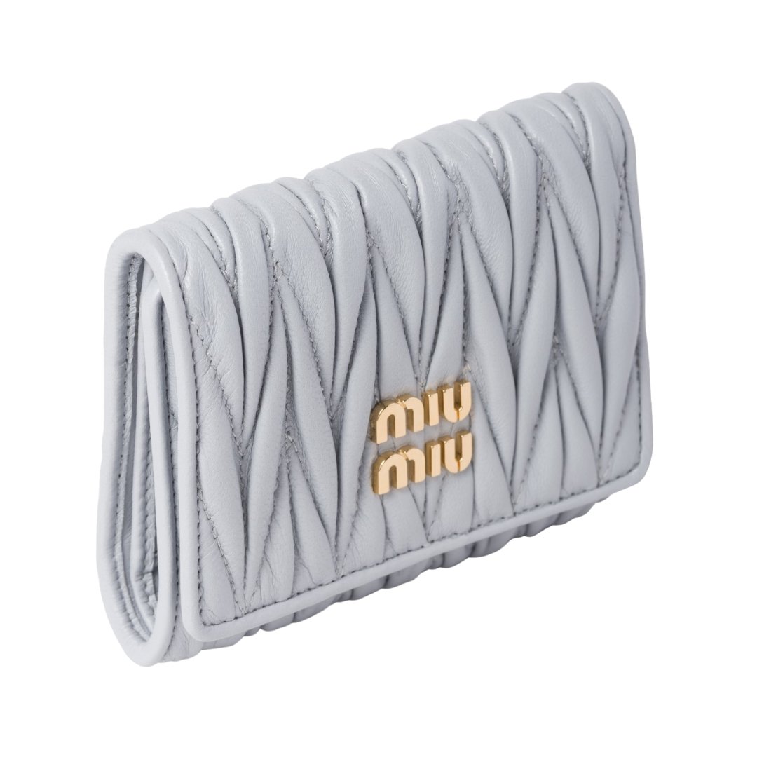 Portacarte Miu Miu in pelle matelassé grigio perla 7,8 cm