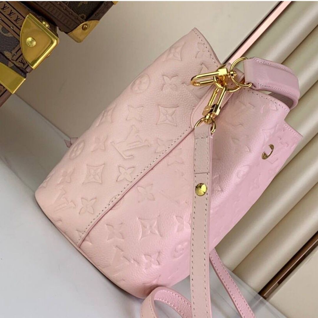 ● Tracolla: Regolabile e removibile in pelle rosa; include manico superiore rigido