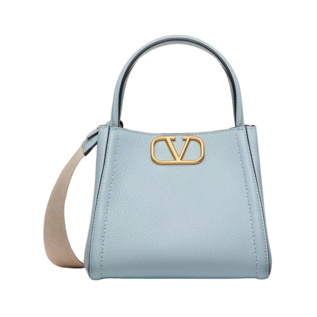 Borsa Valentino in pelle martellata azzurro porcellana 19 cm