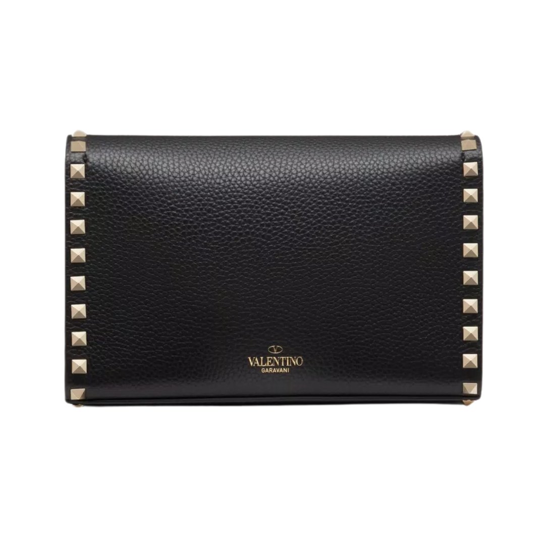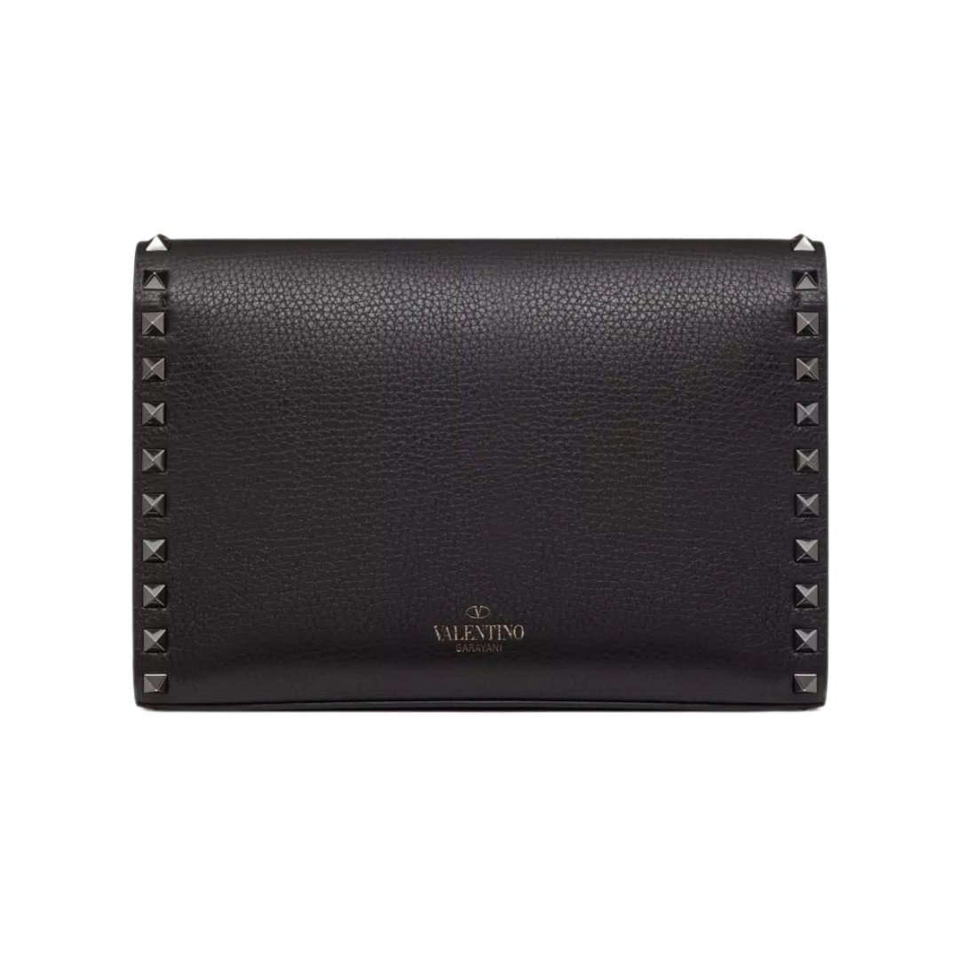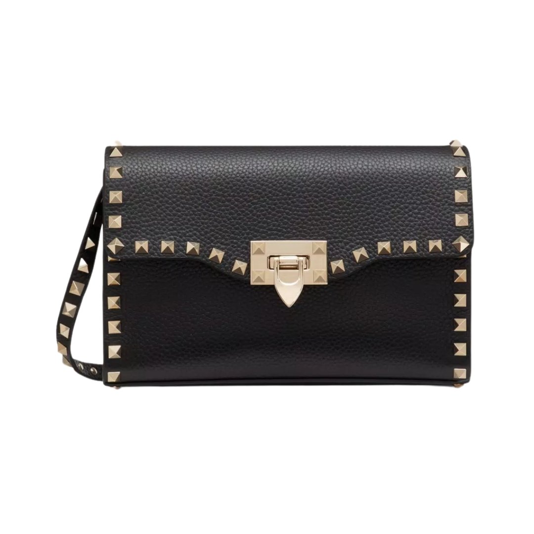 Borsa Valentino crossbody in pelle nera con borchie 22.5 cm