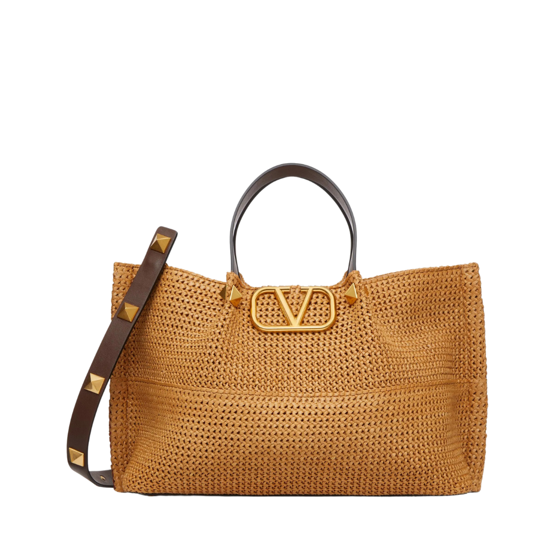 Borsa Valentino Garavani Le Troisiรจme in rafia naturale 35 cm