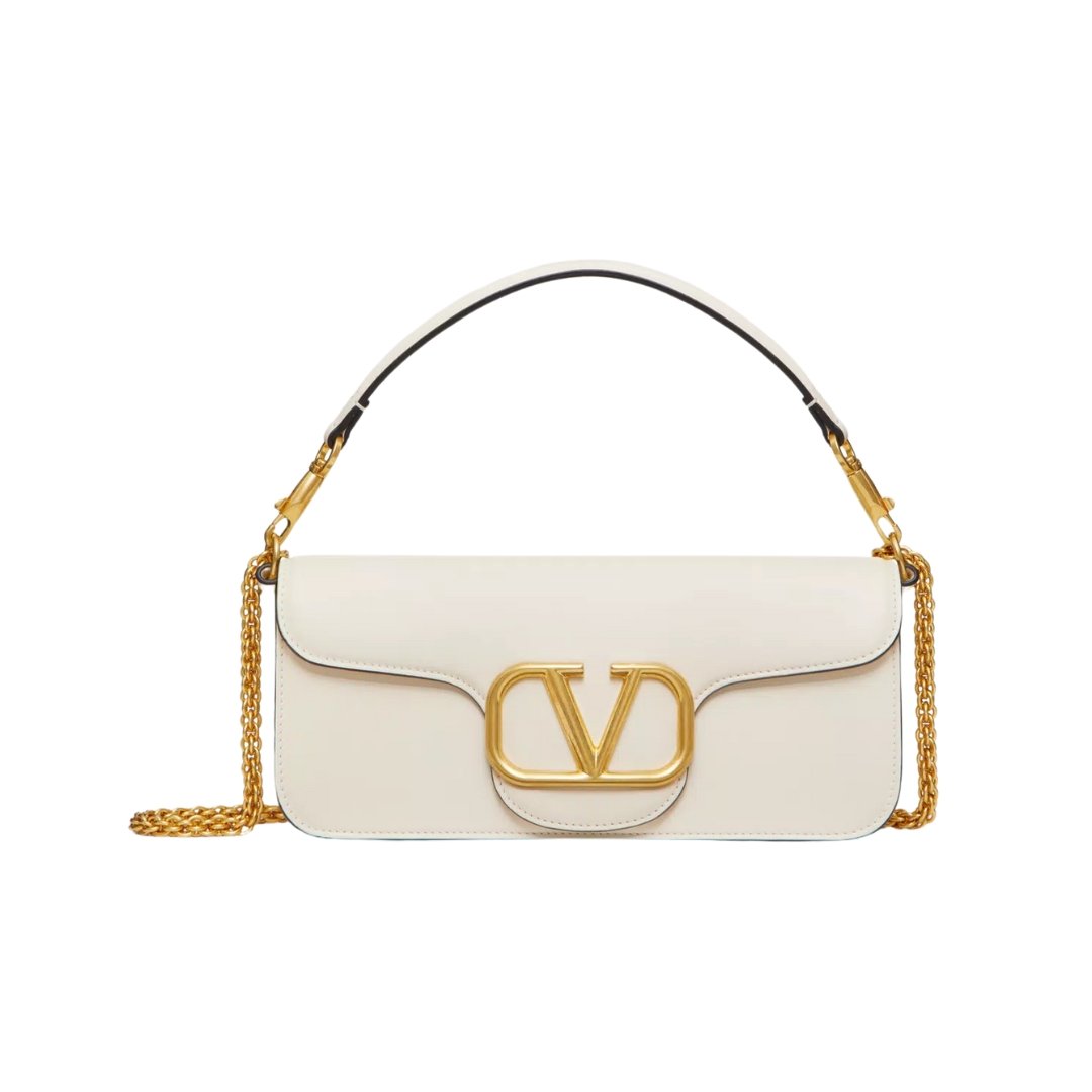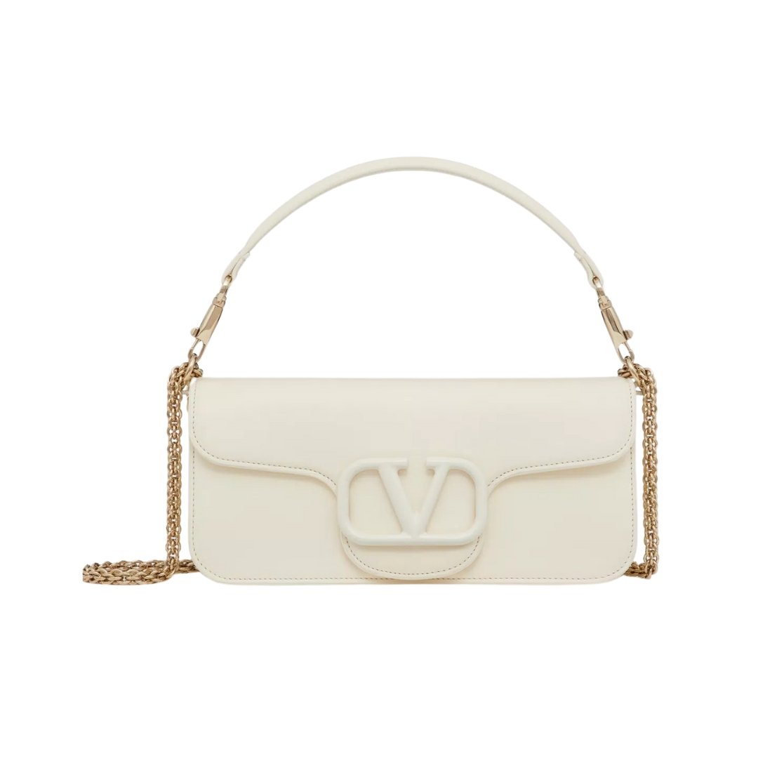 Borsa Valentino Locรฒ in pelle avorio chiaro 27 cm