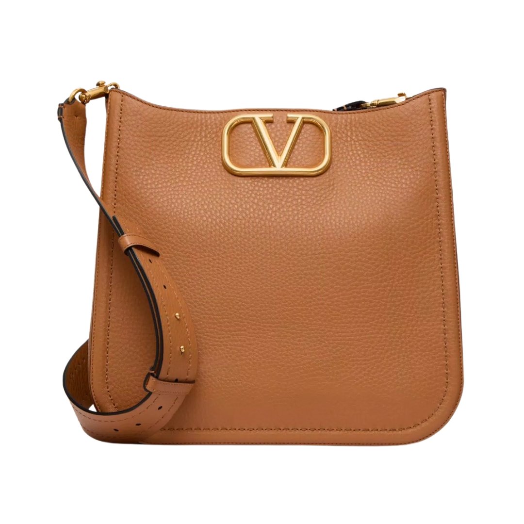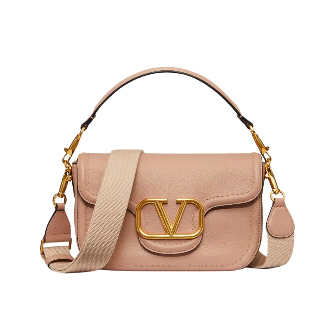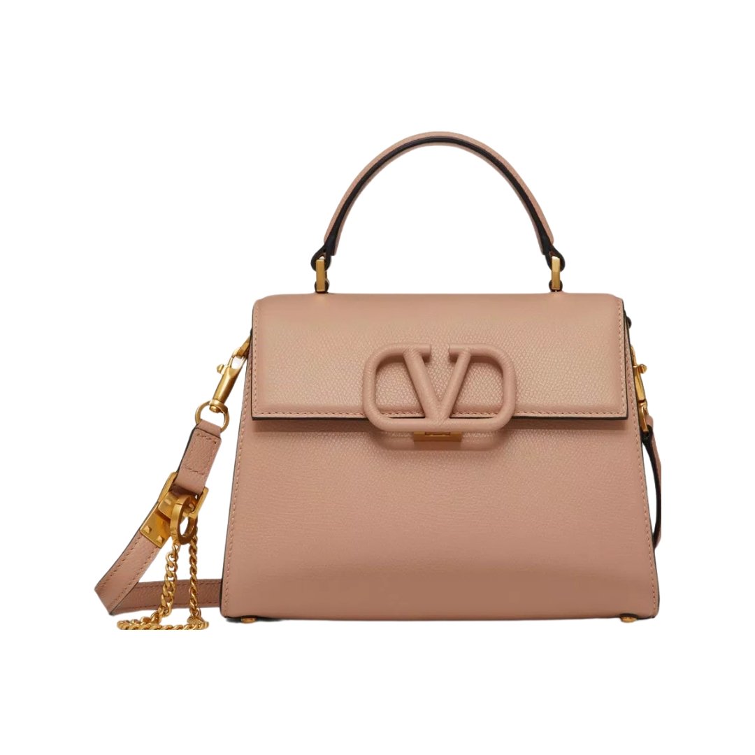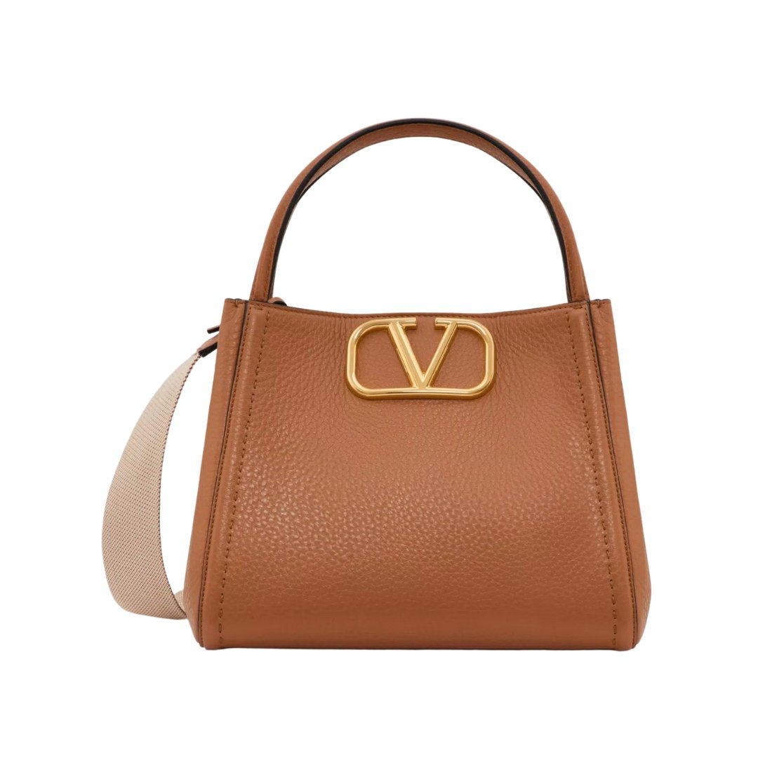 Borsa Valentino Juwel Logo in pelle rosa cannella 20 cm