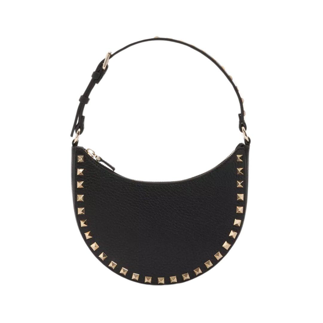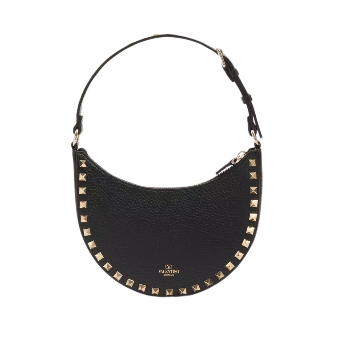 Borsa Valentino in pelle martellata nera con borchie 20 cm