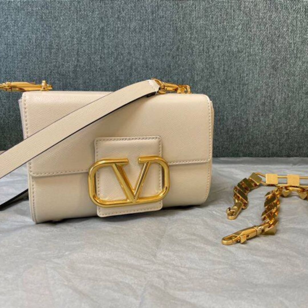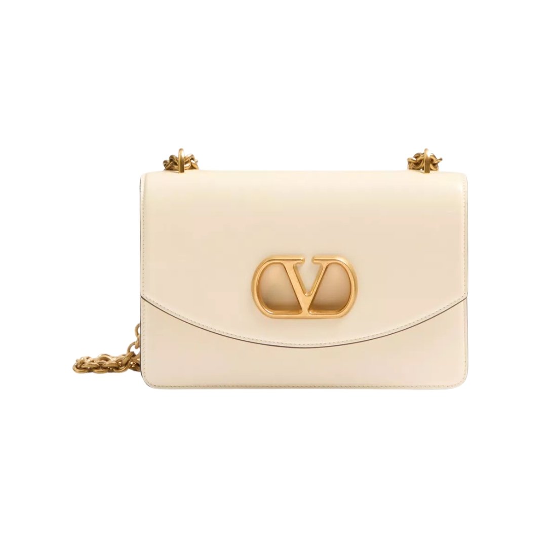 Borsa Valentino Stud Sign in pelle crema 20 cm
