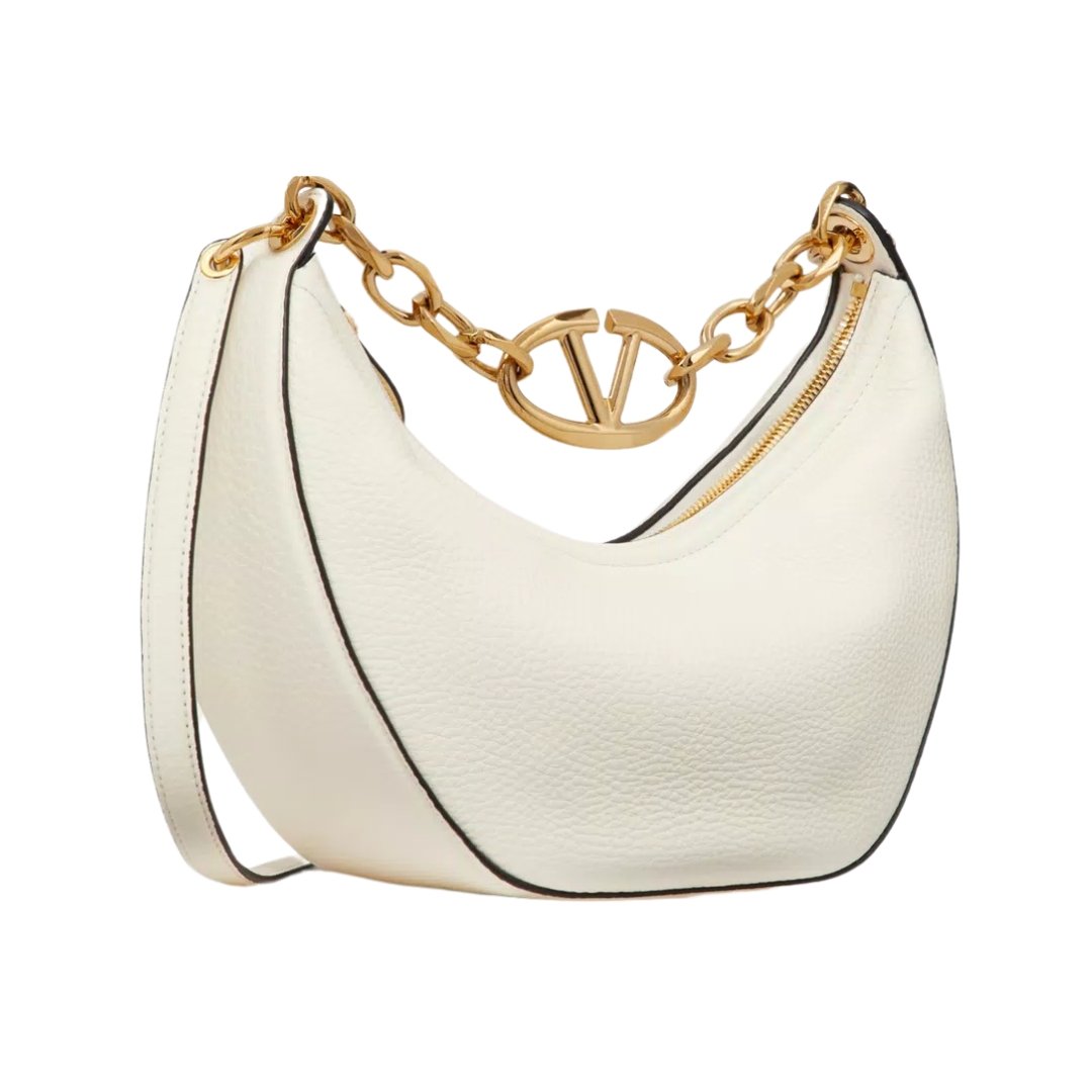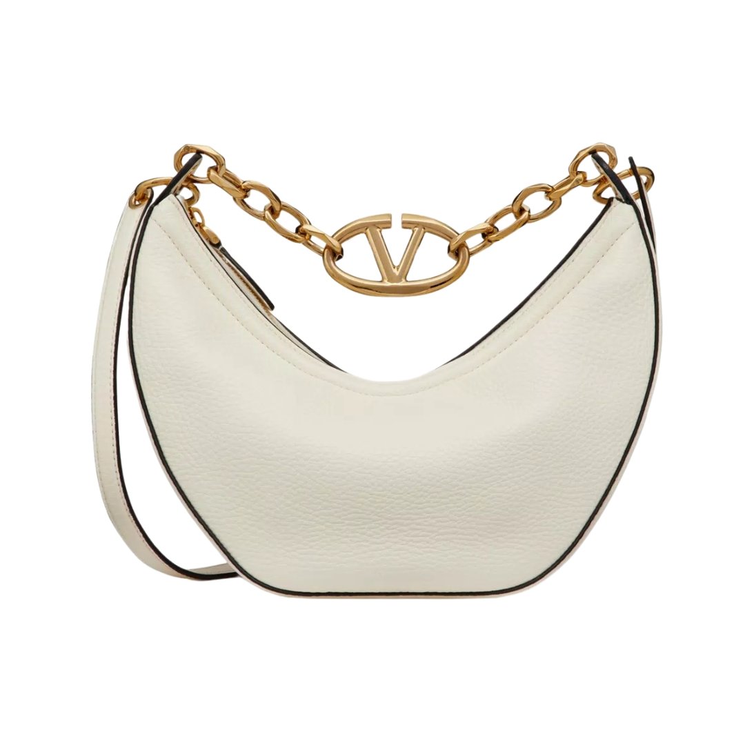 Borsa Valentino VLogo Moon Hobo piccola in pelle color avorio 29 cm