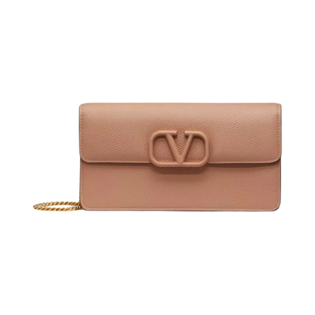 Borsa Valentino Signature in pelle color rosa cannella 20 cm