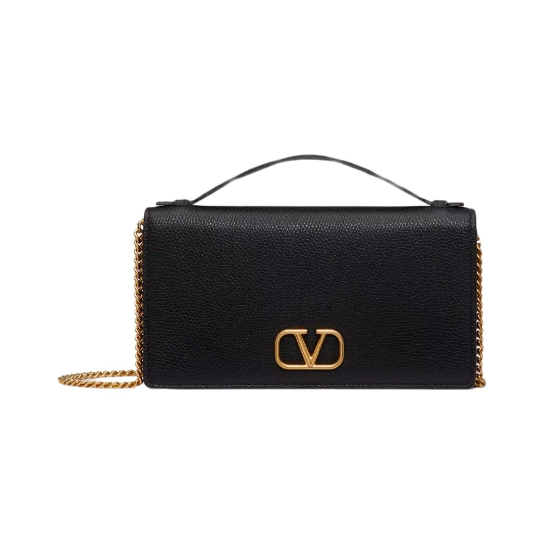 Borsa Valentino V-Logo in pelle nera 23 cm