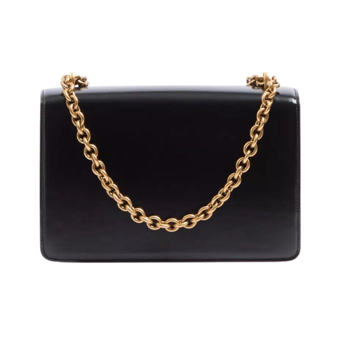 Dimensioni:โ— Larghezza: 24 cmโ— Altezza: 17 cmโ— Profonditร : 7 cm Dettagli:โ— Materiale: Pelle di vitello lucidaโ— Colore: Neroโ— Chiusura: Patta