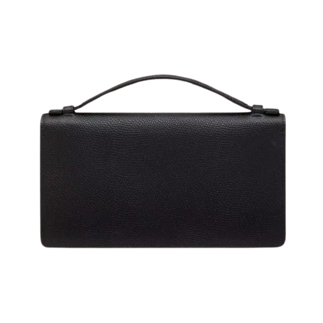 Dimensioni:โ— Larghezza: 20 cmโ— Altezza: 12 cmโ— Profonditร : 4 cm Dettagli:โ— Materiale: Pelle di vitelloโ— Colore: Neroโ— Chiusura: Patta con