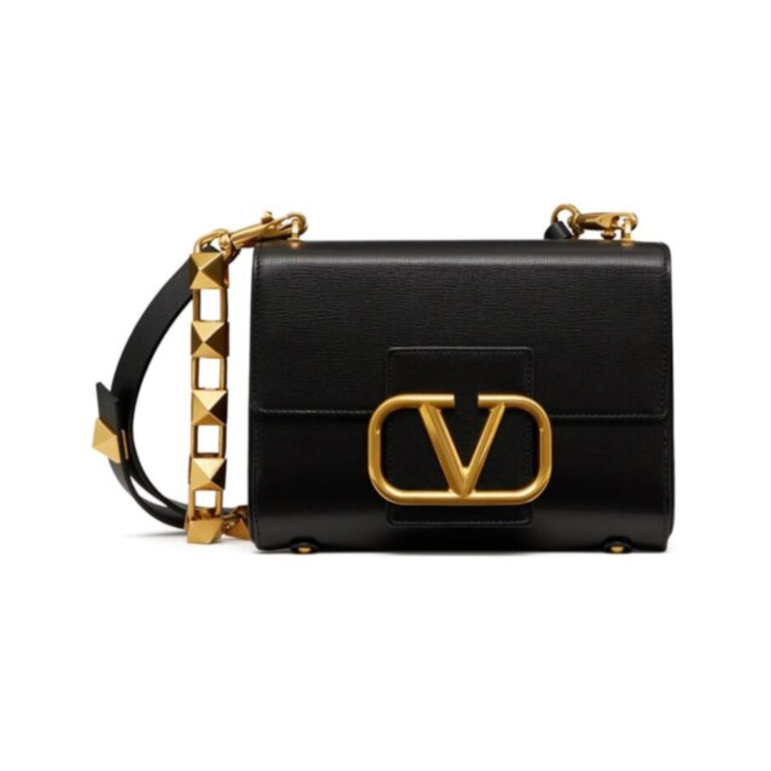 Borsa Valentino Stud Sign in pelle nera 20 cm