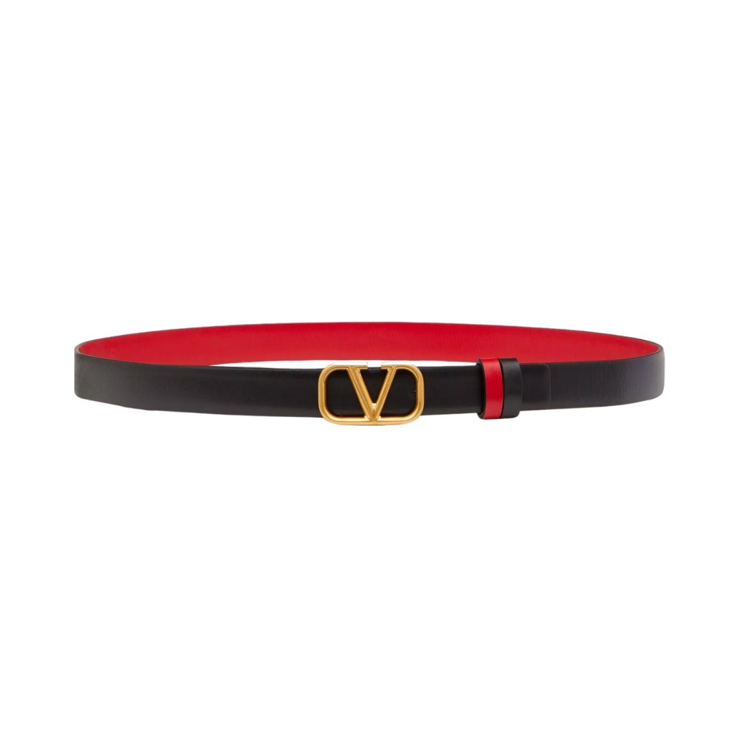 Dettagli:โ— Materiale: Pelle di vitelloโ— Colore: Nera da un lato, rosso acceso dallโ€™altroโ— Chiusura: Fibbia VLogo Signatureโ— Logo: VLogo in