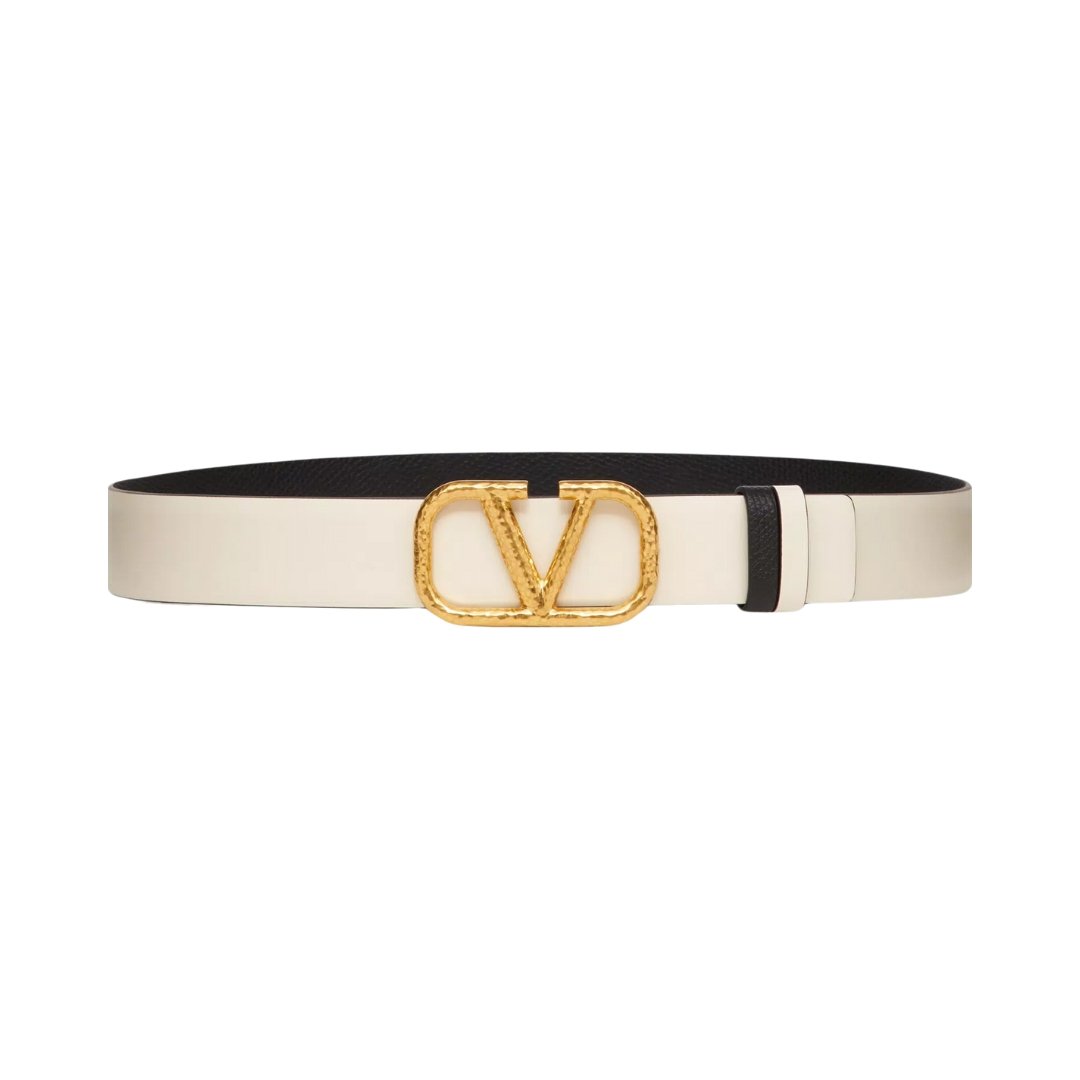 Dettagli:โ— Materiale: Pelle di vitelloโ— Colore: Avorio da un lato, nero dallโ€™altroโ— Chiusura: Fibbia VLogo Signatureโ— Logo: VLogo in metalloโ—