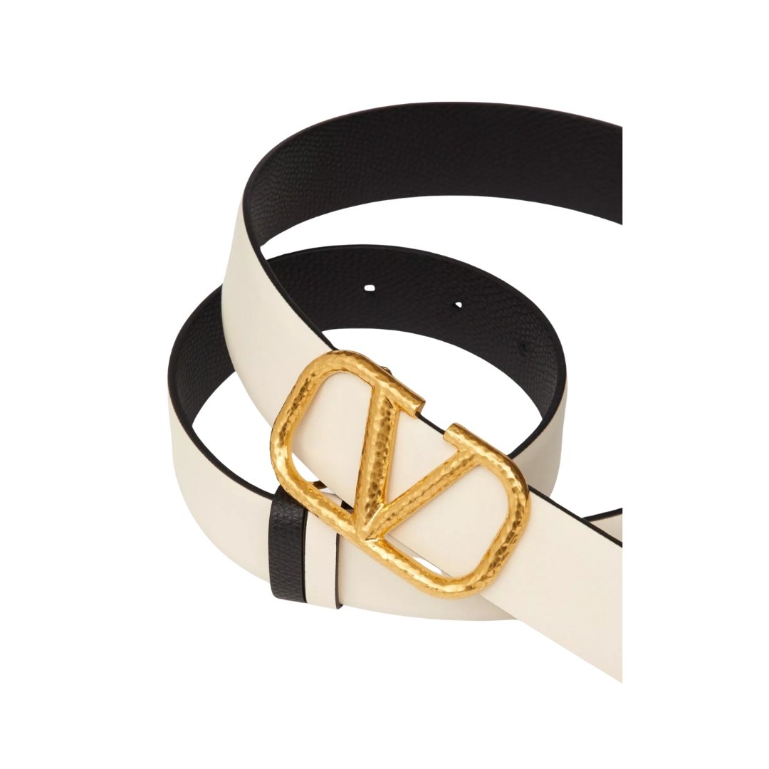 Cintura reversibile Valentino VLogo in pelle avorio/nera 3 cm