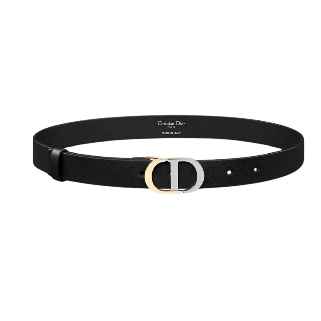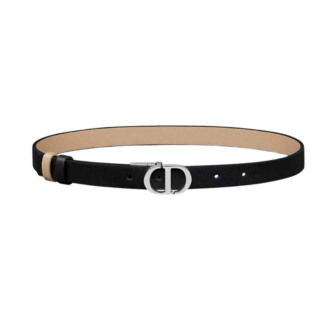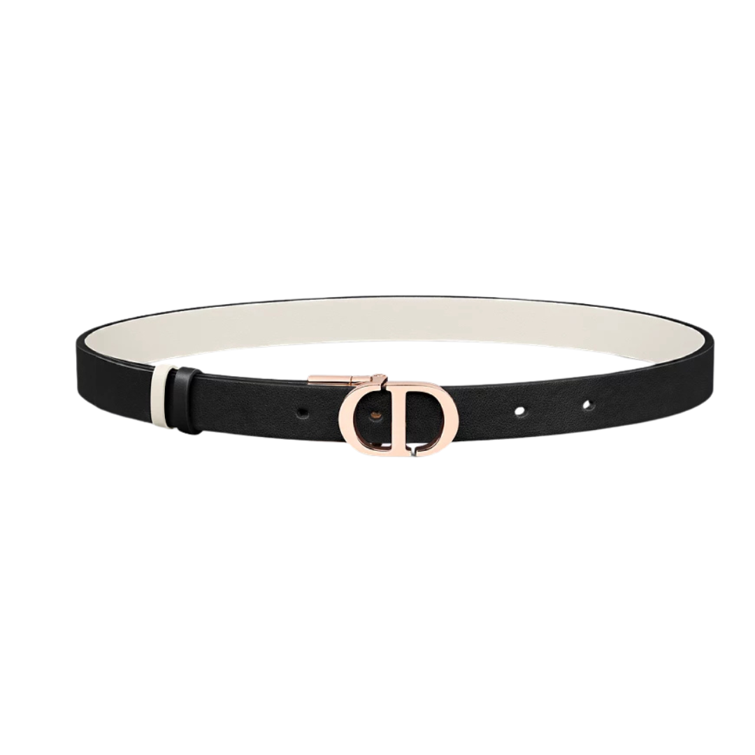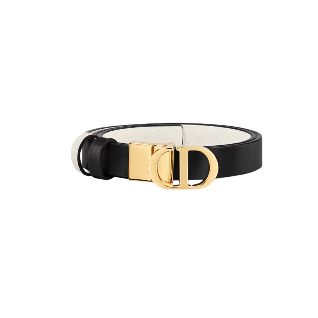 Dimensioni:โ— Larghezza: 3 cm Dettagli:โ— Materiale: Pelle di vitello lisciaโ— Colore: Nero e oro chiaroโ— Chiusura: Fibbia “CD”โ— Logo: Fibbia