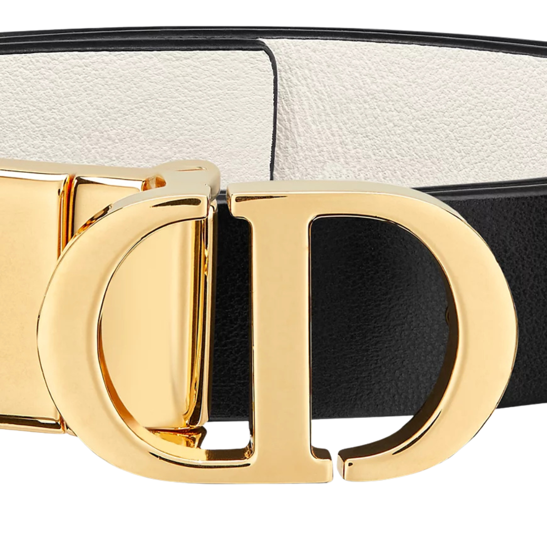 Cintura Dior 30 Montaigne in pelle nera e latte 2 cm