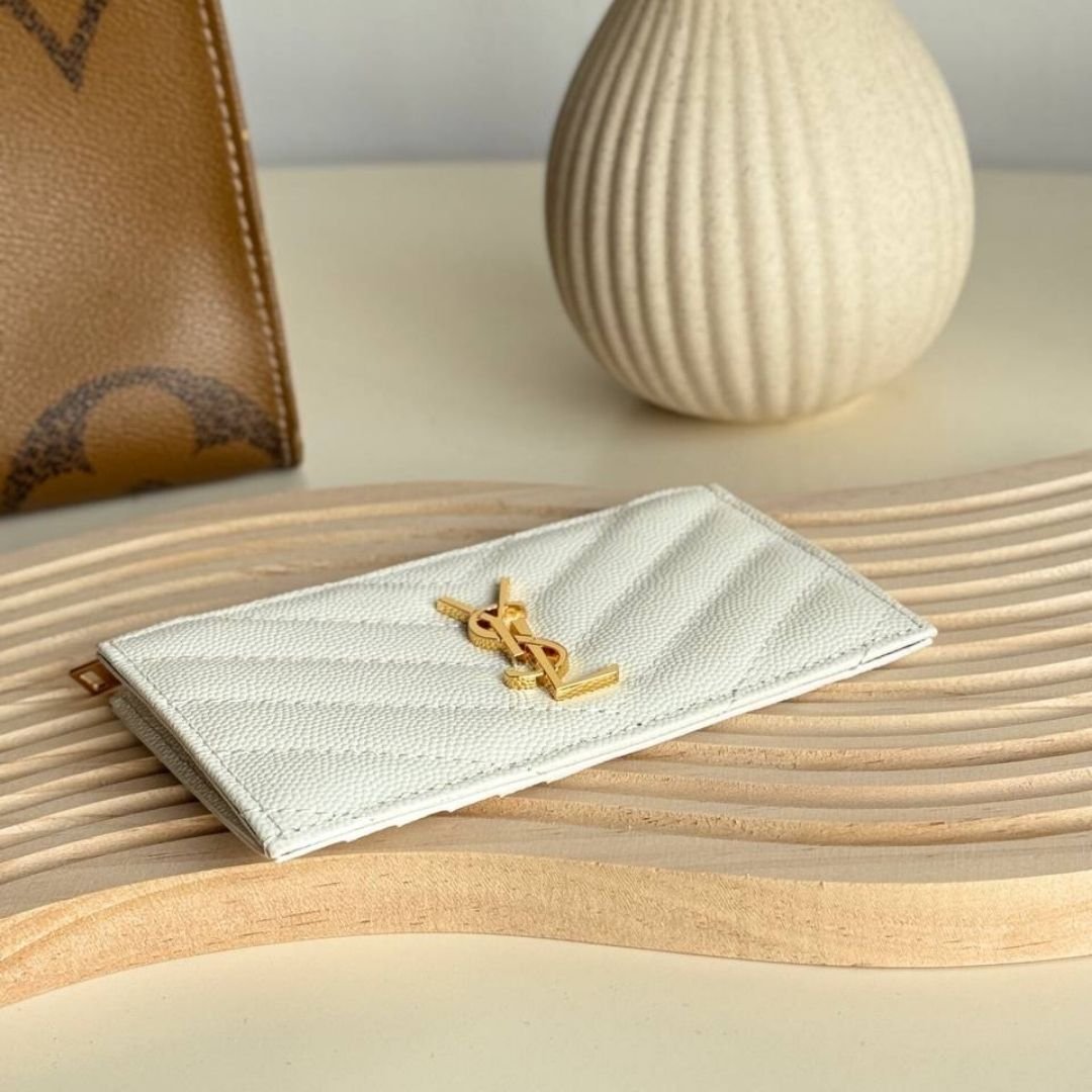 Pochette Saint Laurent Cassandra in pelle bianca 13 cm