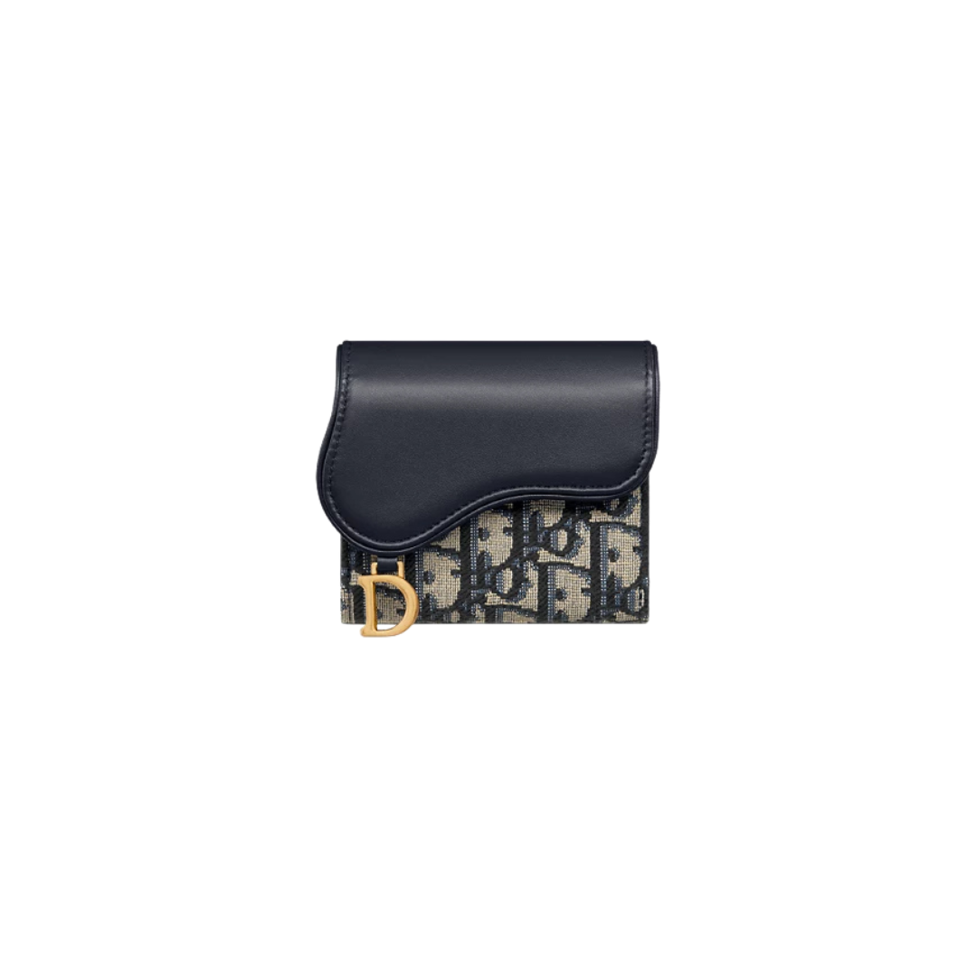 Portafoglio Dior Saddle Lotus in pelle blu navy