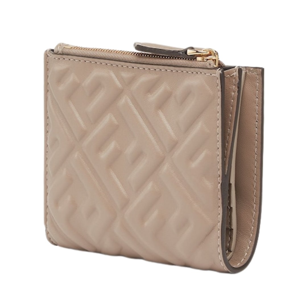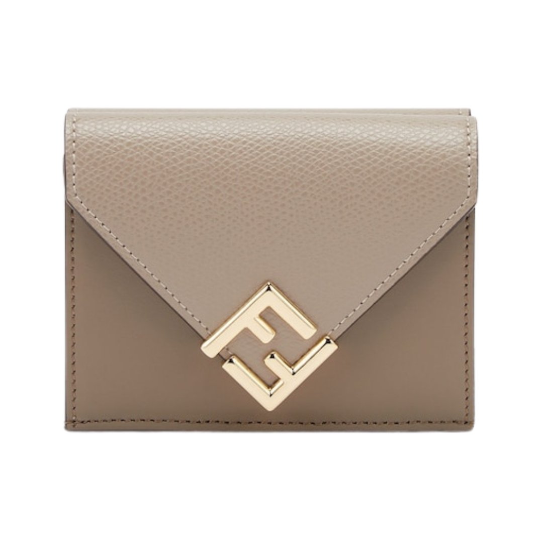 Portafoglio Fendi in pelle liscia grigia e tortora con logo FF 8 cm